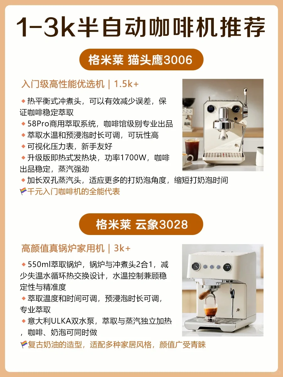✨1-3k半自动咖啡机推荐