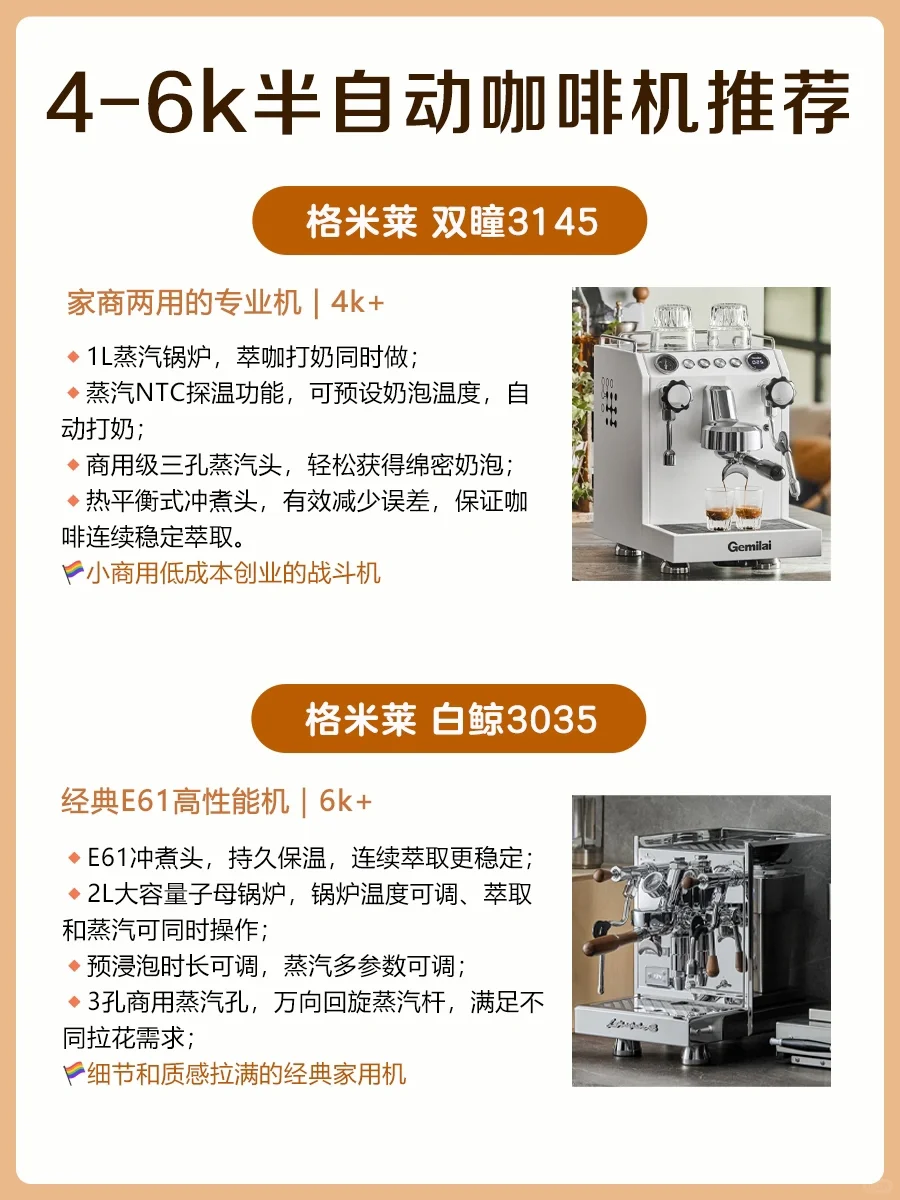 ✨4-6k半自动咖啡机推荐