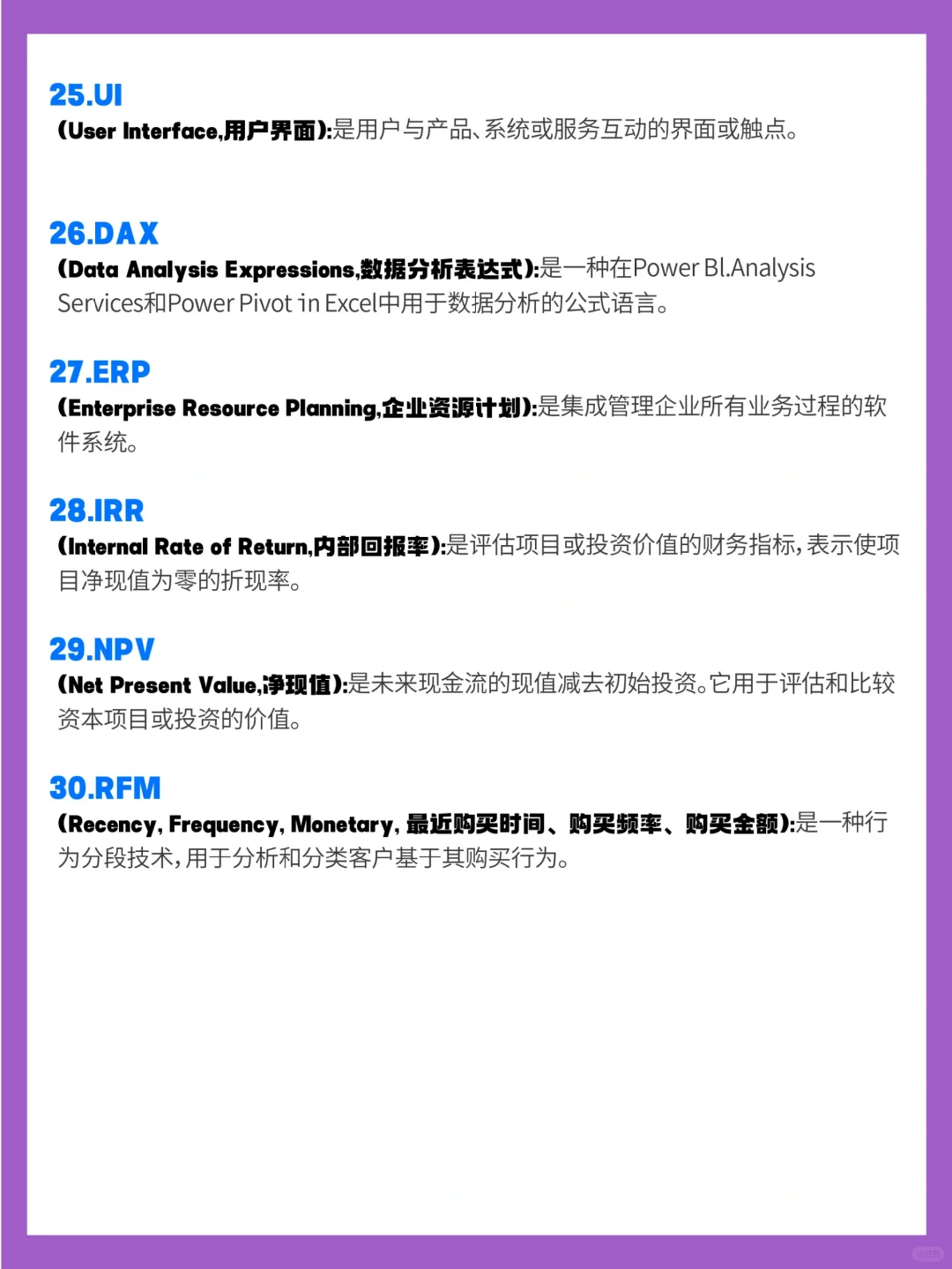 今天专门给大家详细讲解了 30 个商业分析师(Business Analyst)的入门术语哦,让你在商业会议中不再迷茫,轻松变成数据分析达人🫡!