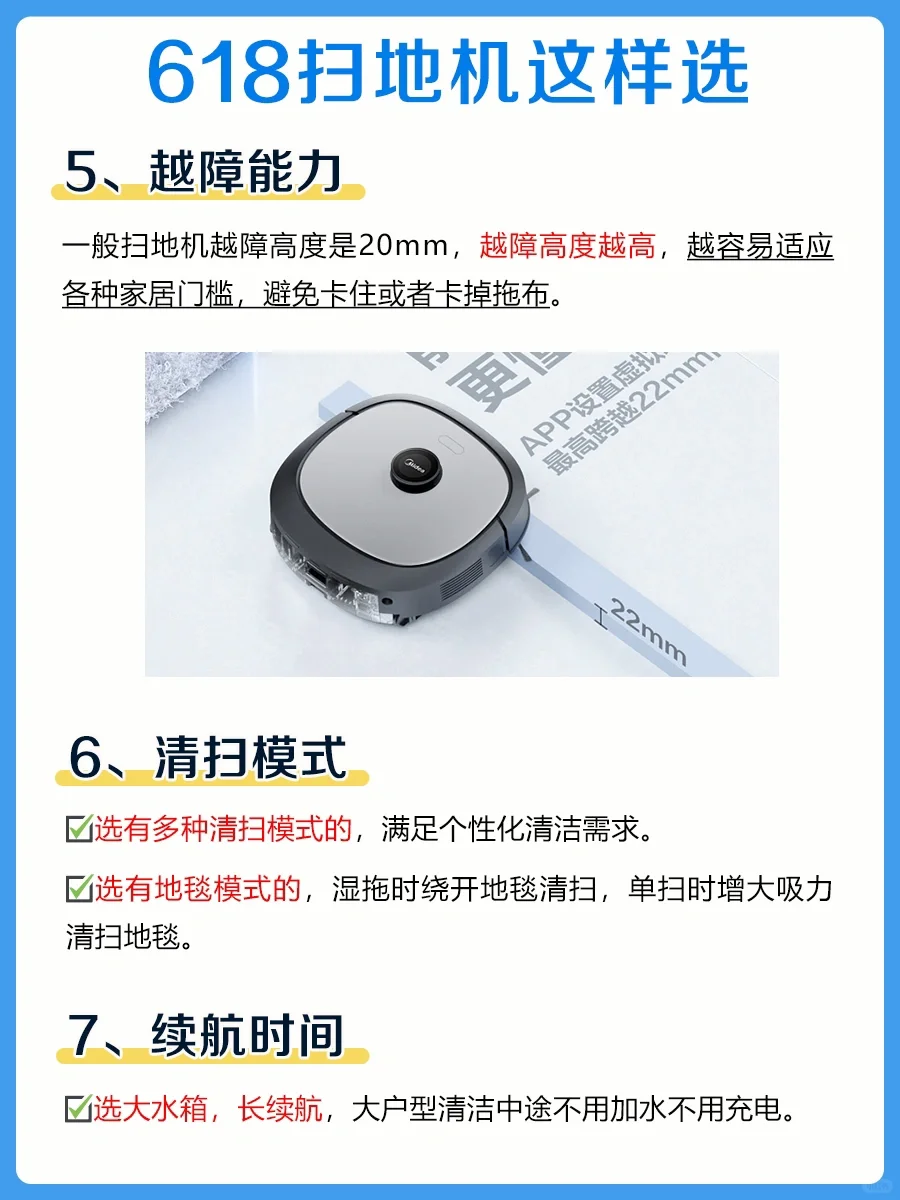 ✅选越障高度高的,适应各种家居门槛,避免卡住或者卡掉拖布