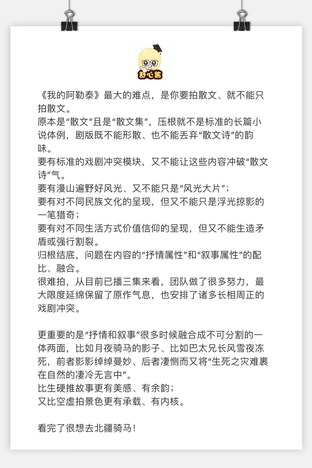 《我的阿勒泰》最大的难点,是你要拍散文、就不能只拍散文。