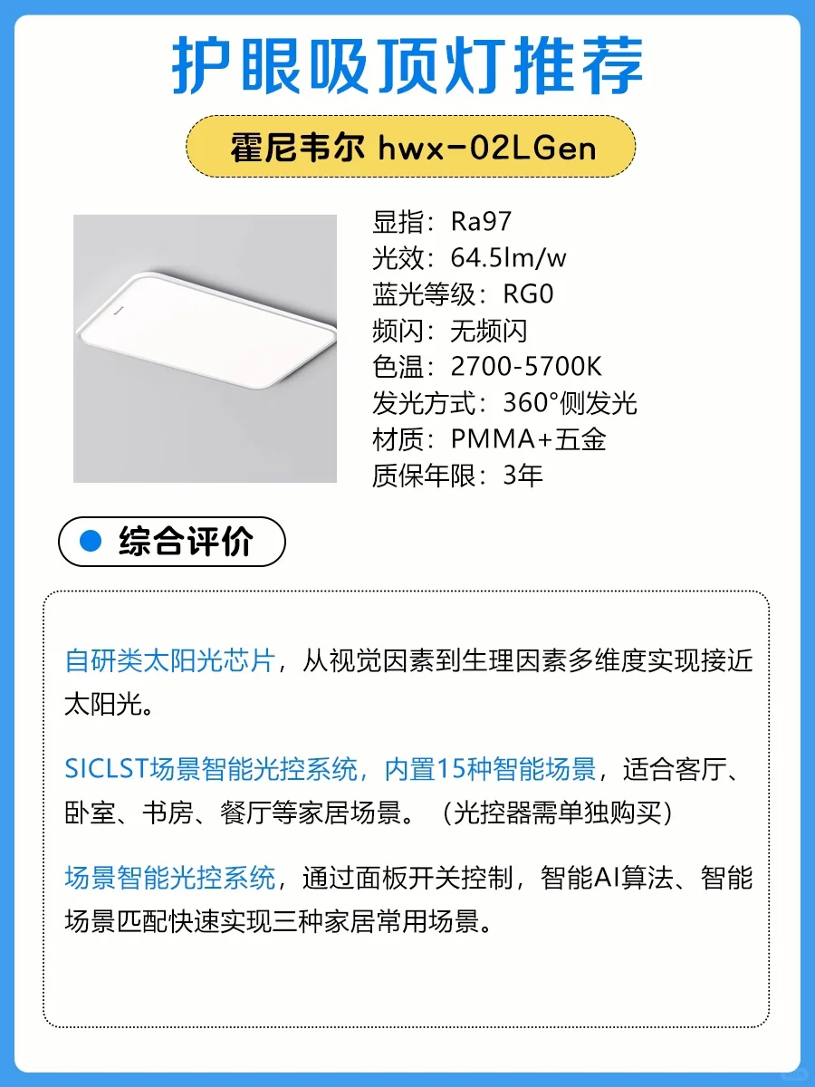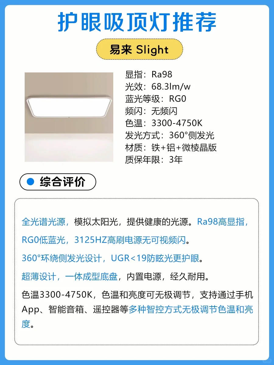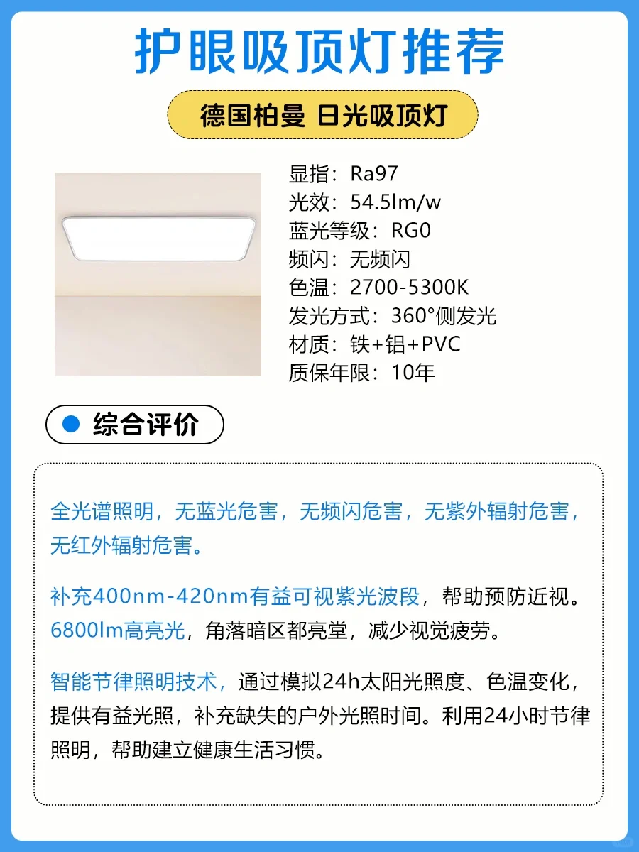 ✅显色指数能做到Ra95以上都是非常优秀的护眼灯具了