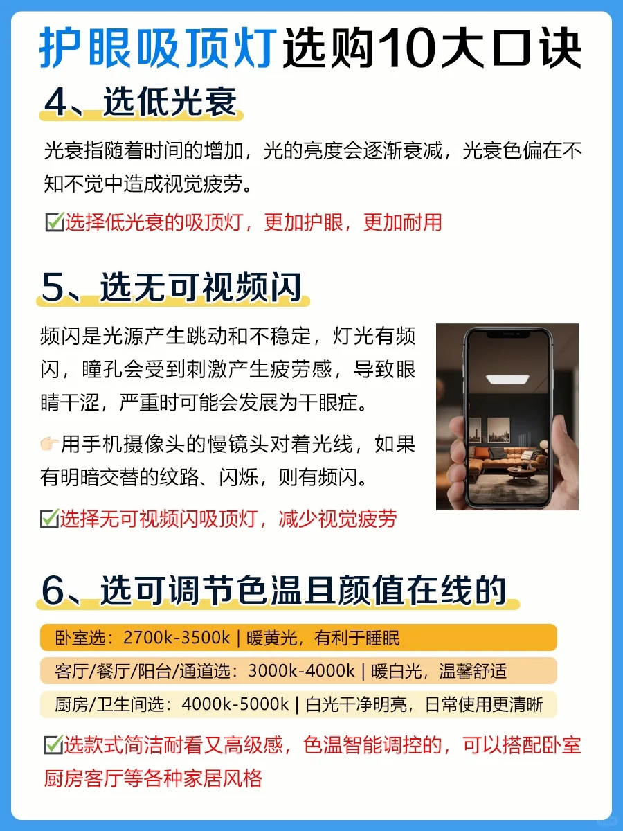 ✅选择低光衰的吸顶灯,更加护眼,更加耐用