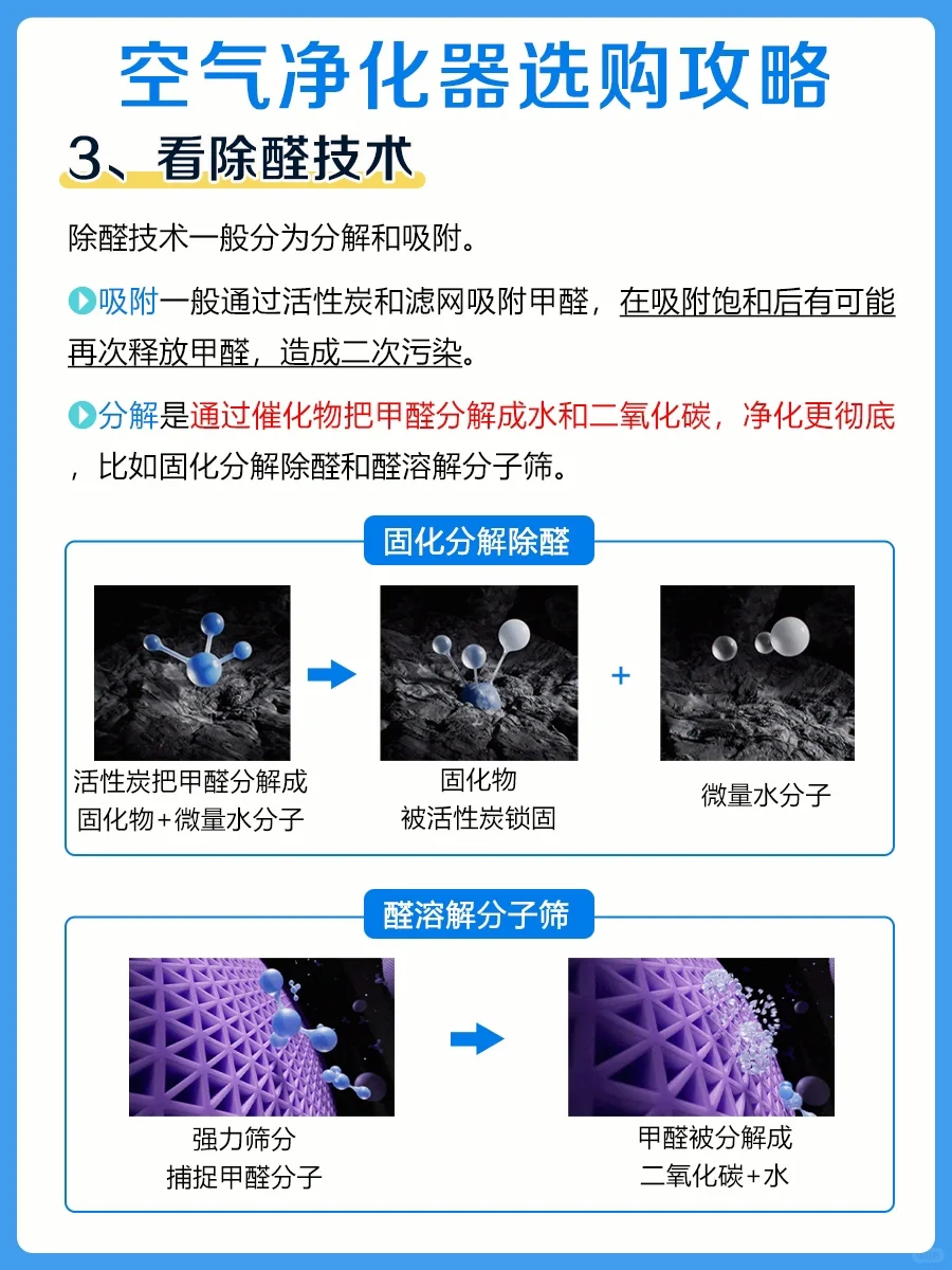 3️⃣除醛技术分为:吸附和分解,分解除醛更彻底