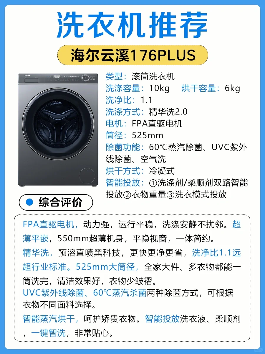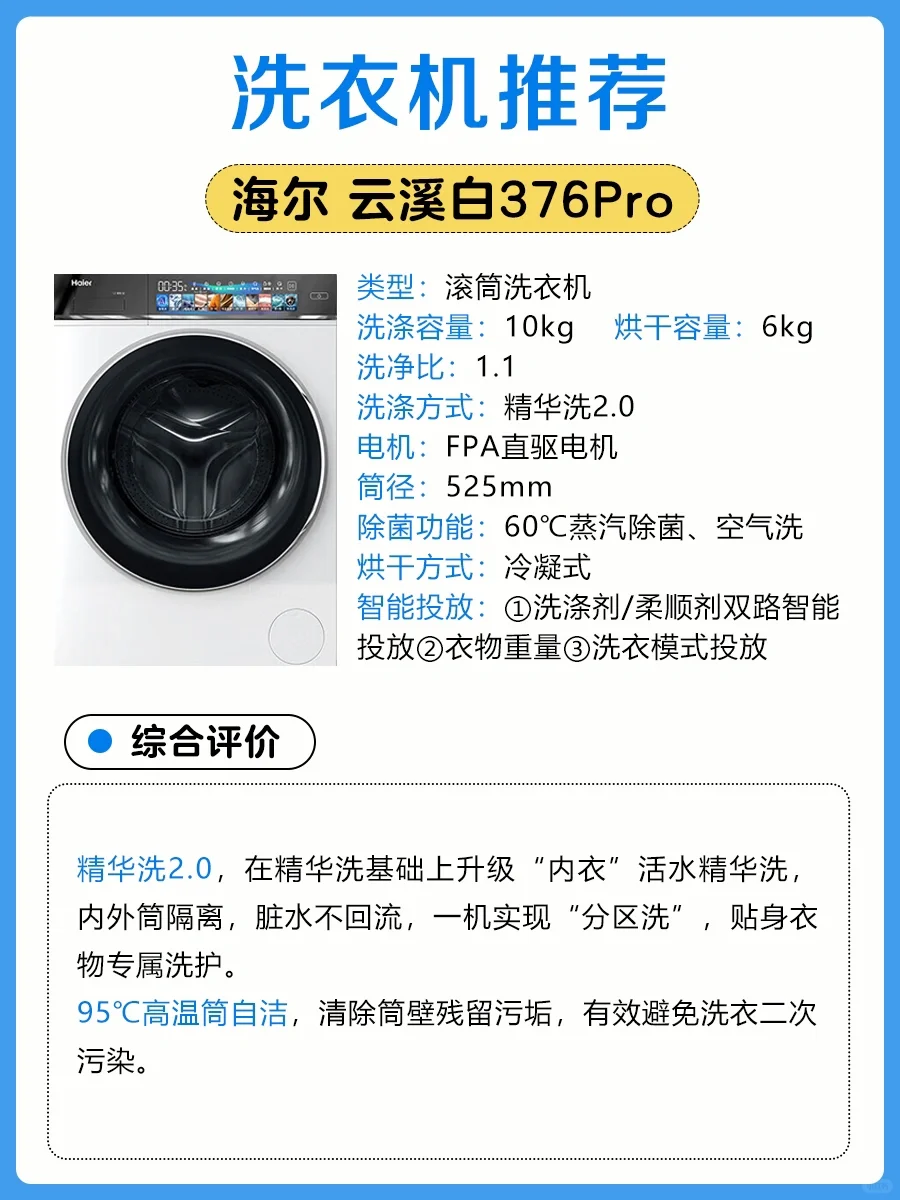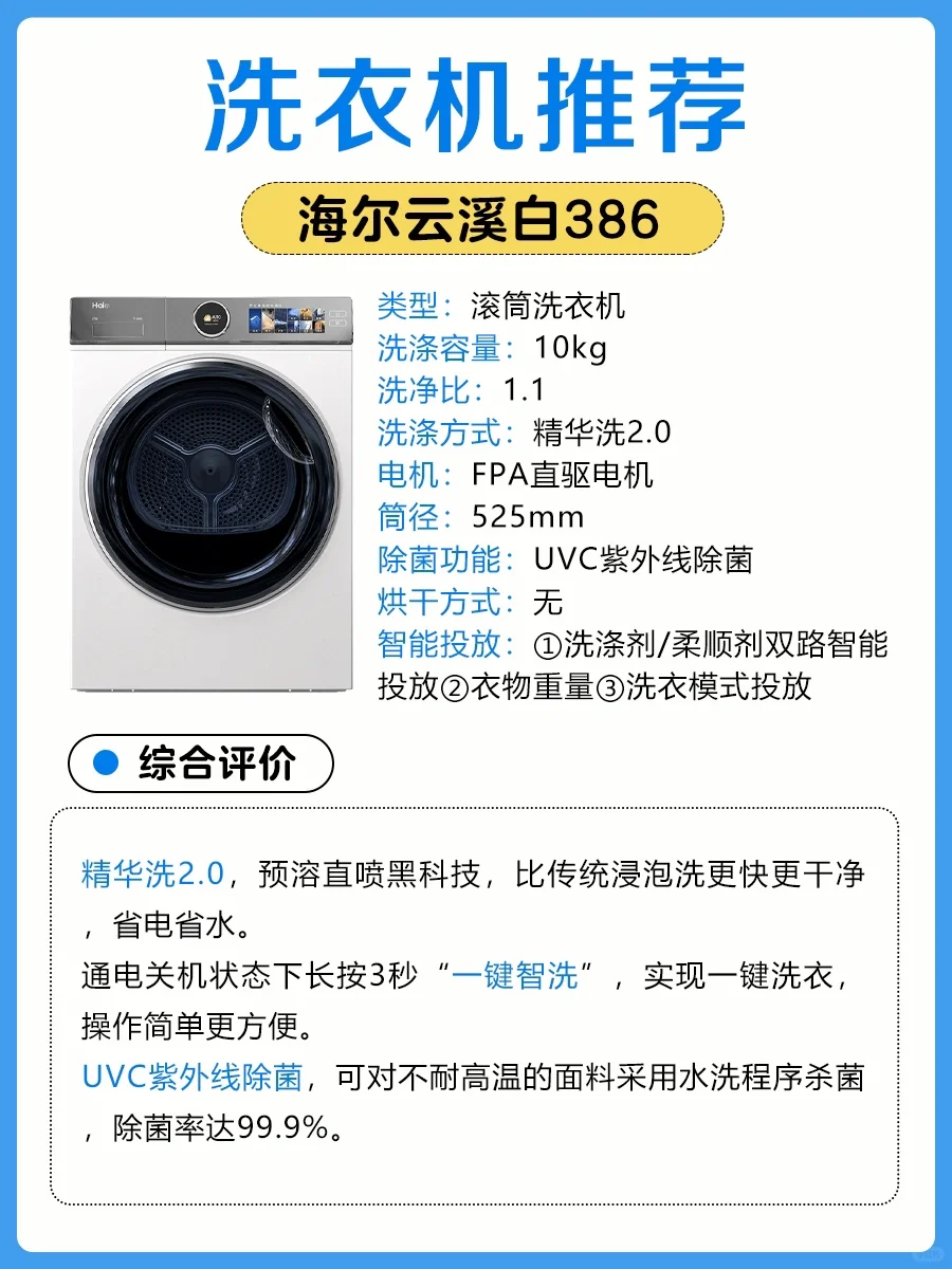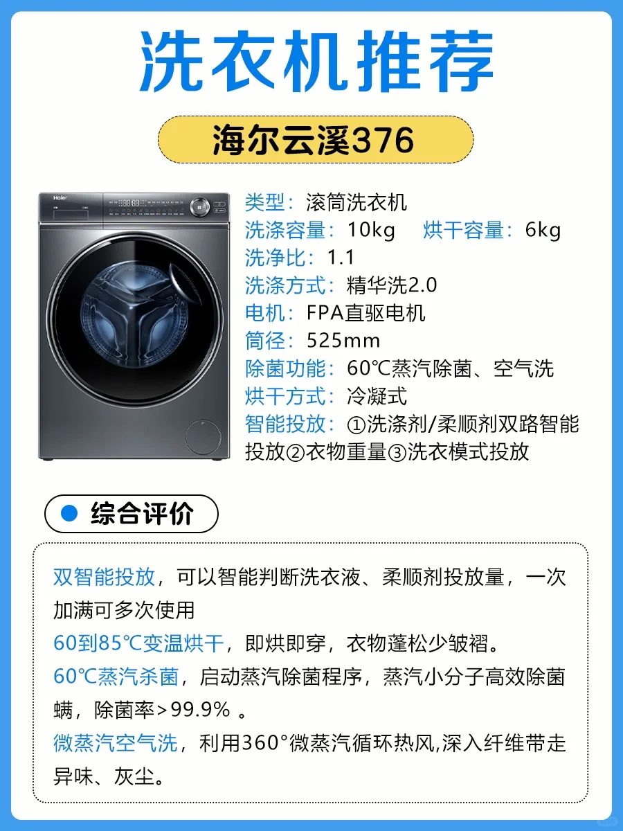✨今天选了海尔的4款热门的洗衣机,详细的参数和综合评价详细看图6-9,如果有洗衣机需求的可以直接看~可以根据自己的需求来选择~