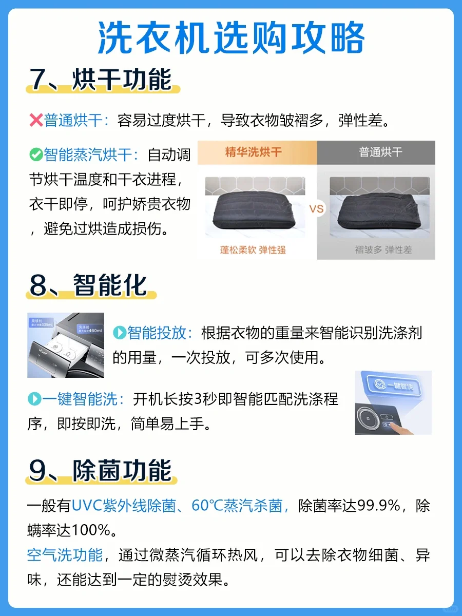 ✅选智能蒸汽烘干,可以自动调节烘干温度和干衣进程,衣干即停,呵护娇贵衣物。