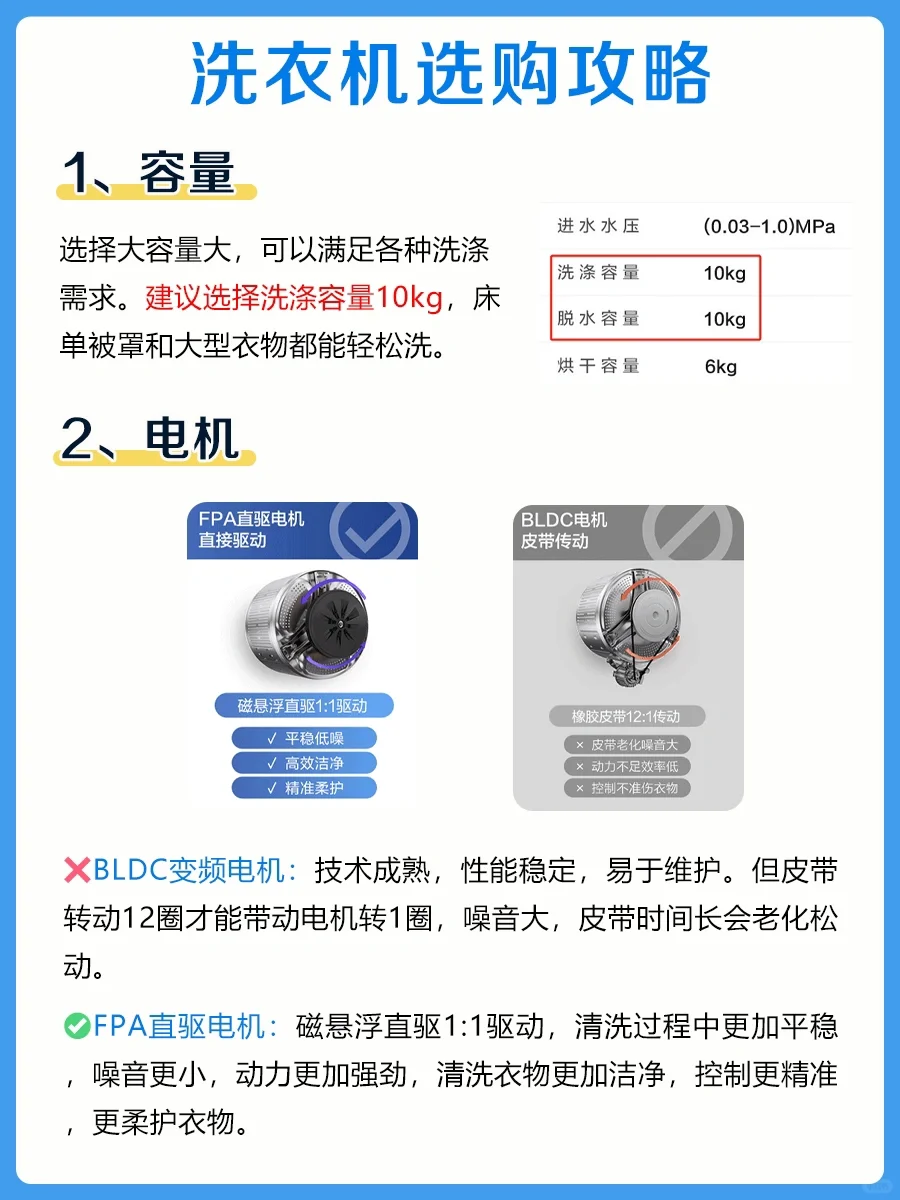 ✅选FPA直驱电机,更加平稳,噪音更小,动力强劲,清洗衣物更加洁净,控制更精准,更柔护衣物。
