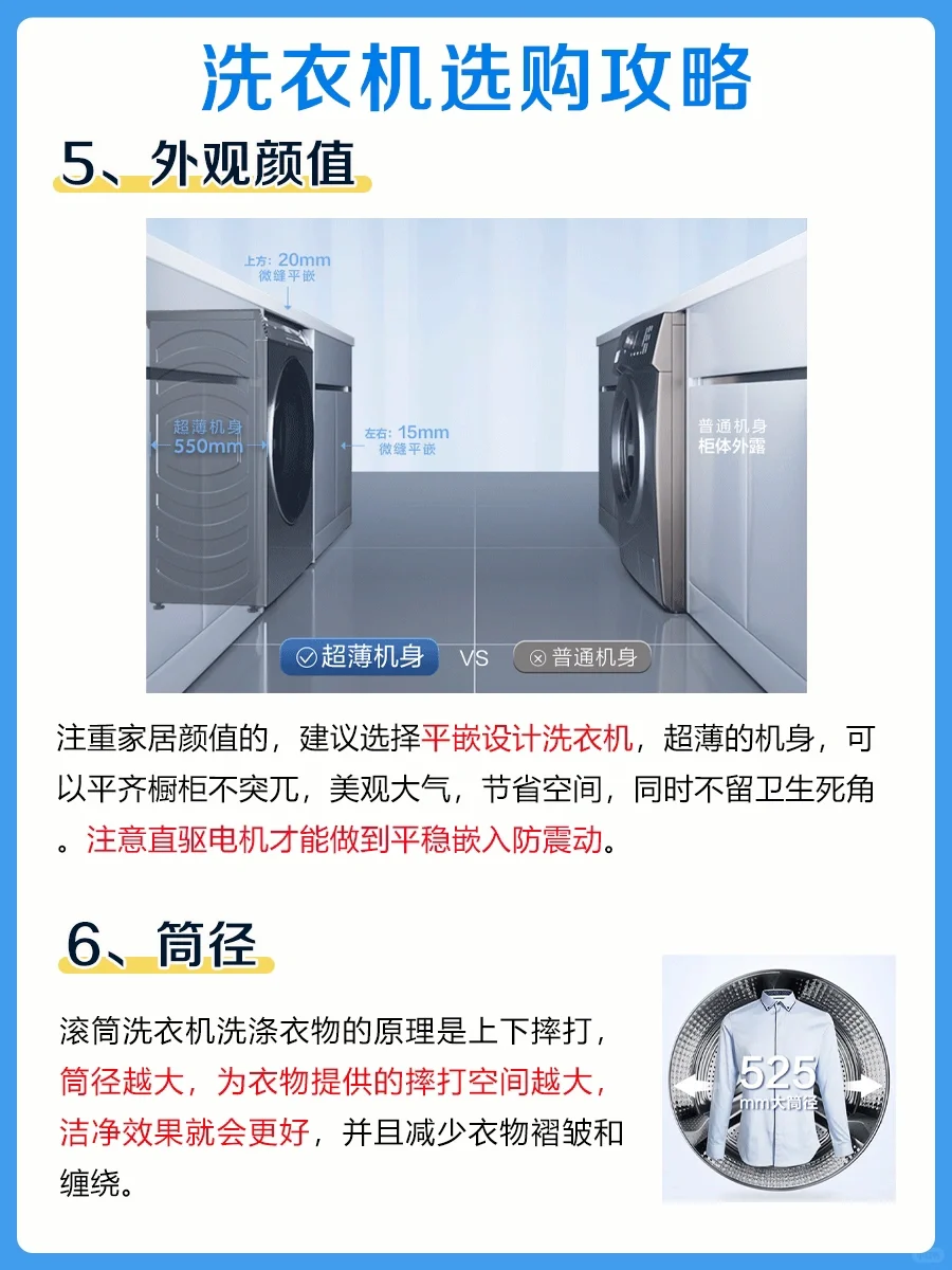 筒径越大,为衣物提供的摔打空间越大,洁净效果就会更好。