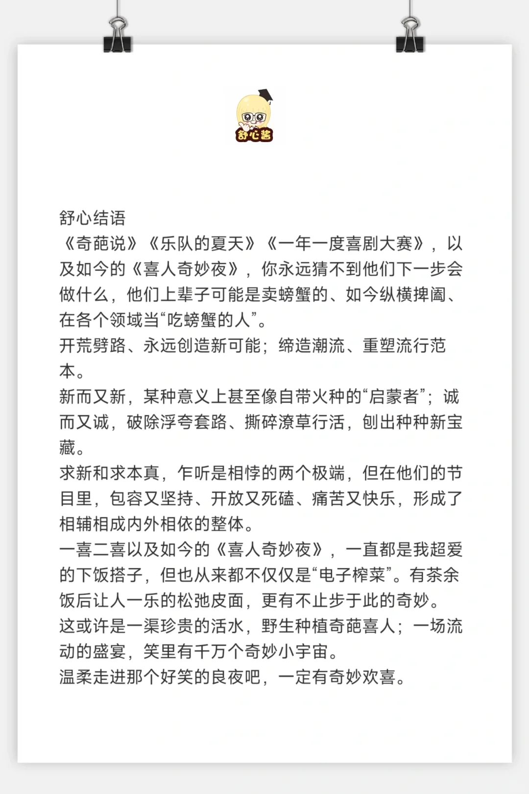 从某种意义上说,一喜、二喜,加如今的《喜人奇妙夜》,自成一脉构成了一个“新喜剧宇宙”