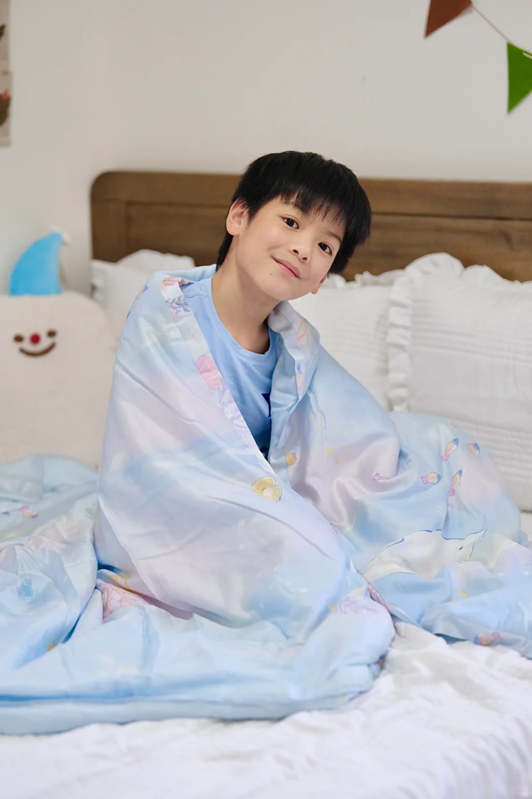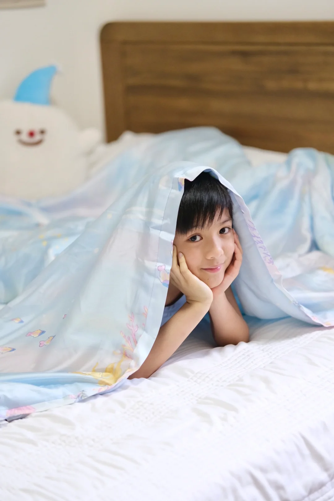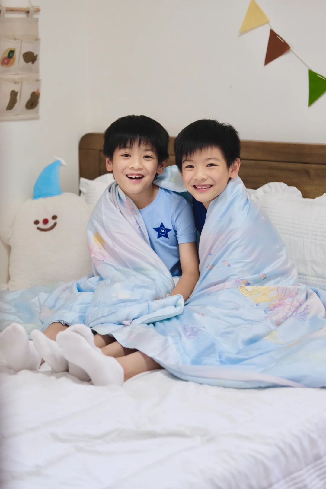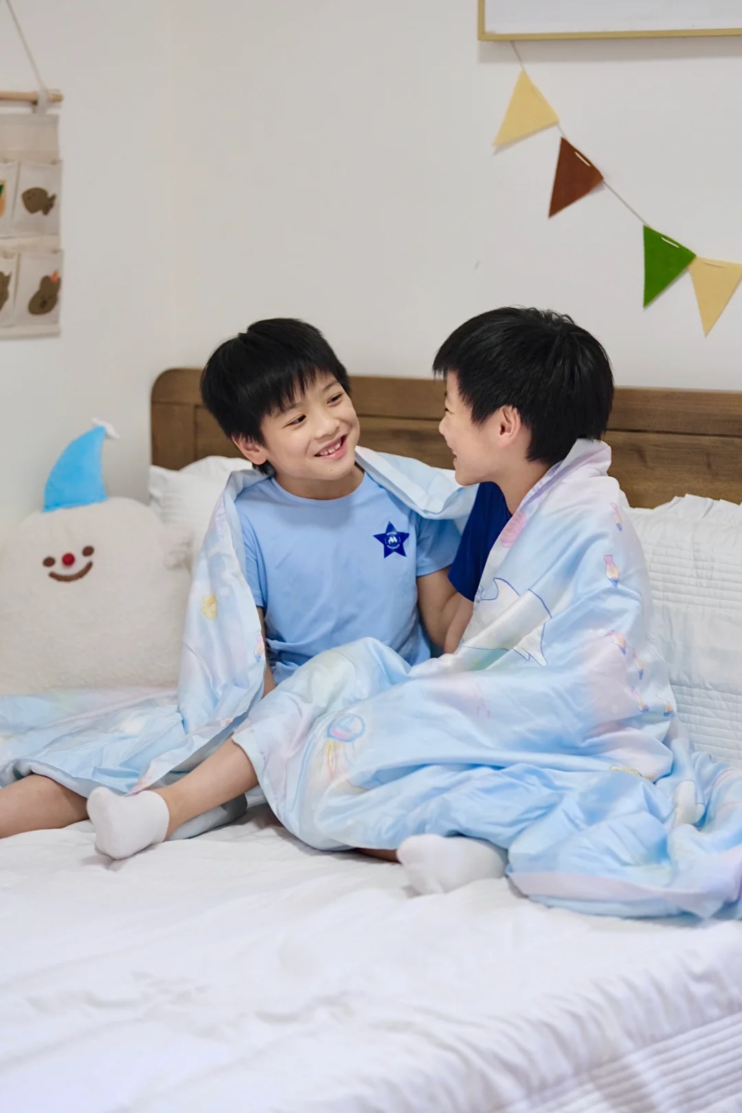 哥哥说:我跟弟弟都好喜欢这个被子,而且它滑滑的还冰冰凉凉的,感觉睡觉都睡得更香啦[喝奶茶R]!