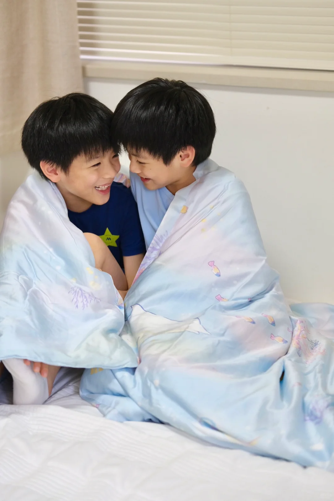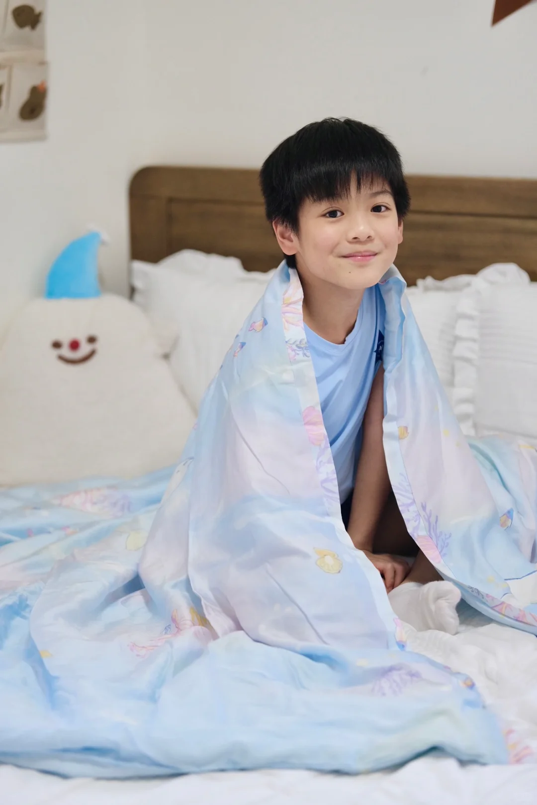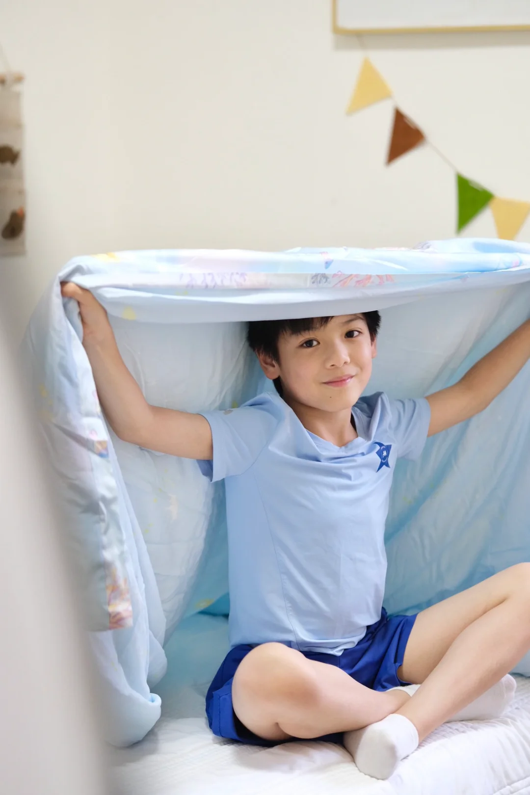哥哥说:我跟弟弟都好喜欢这个被子,而且它滑滑的还冰冰凉凉的,感觉睡觉都睡得更香啦[喝奶茶R]!