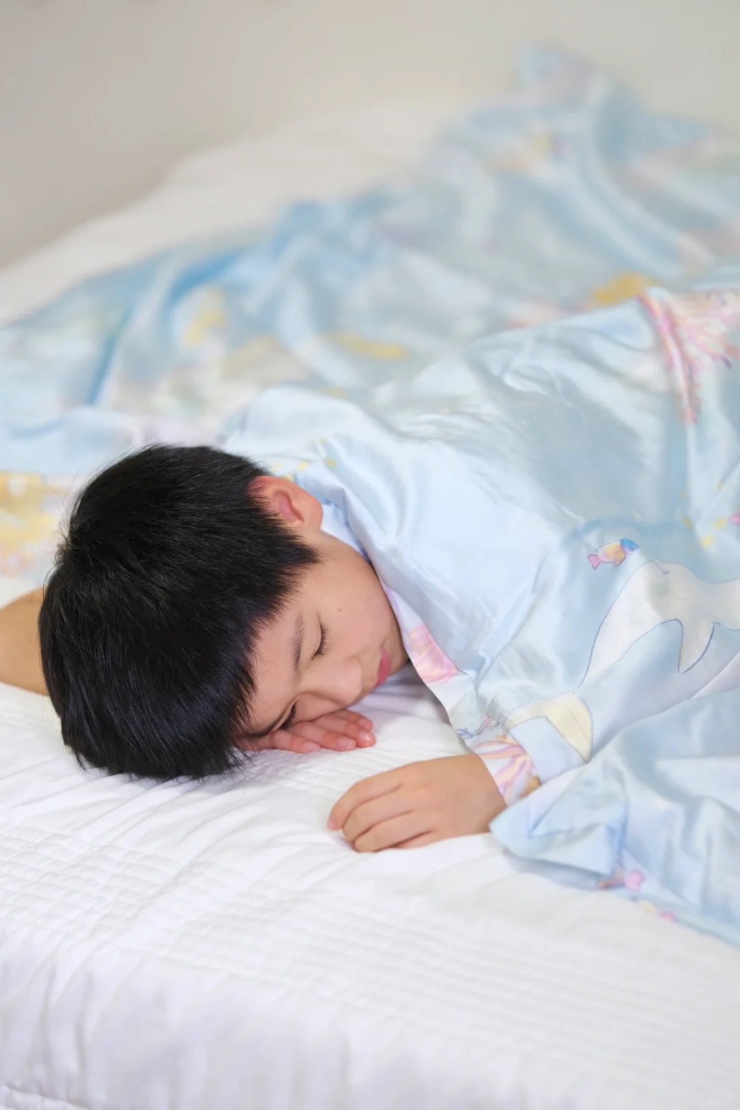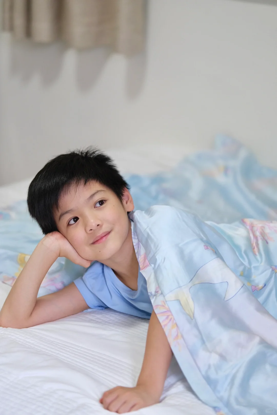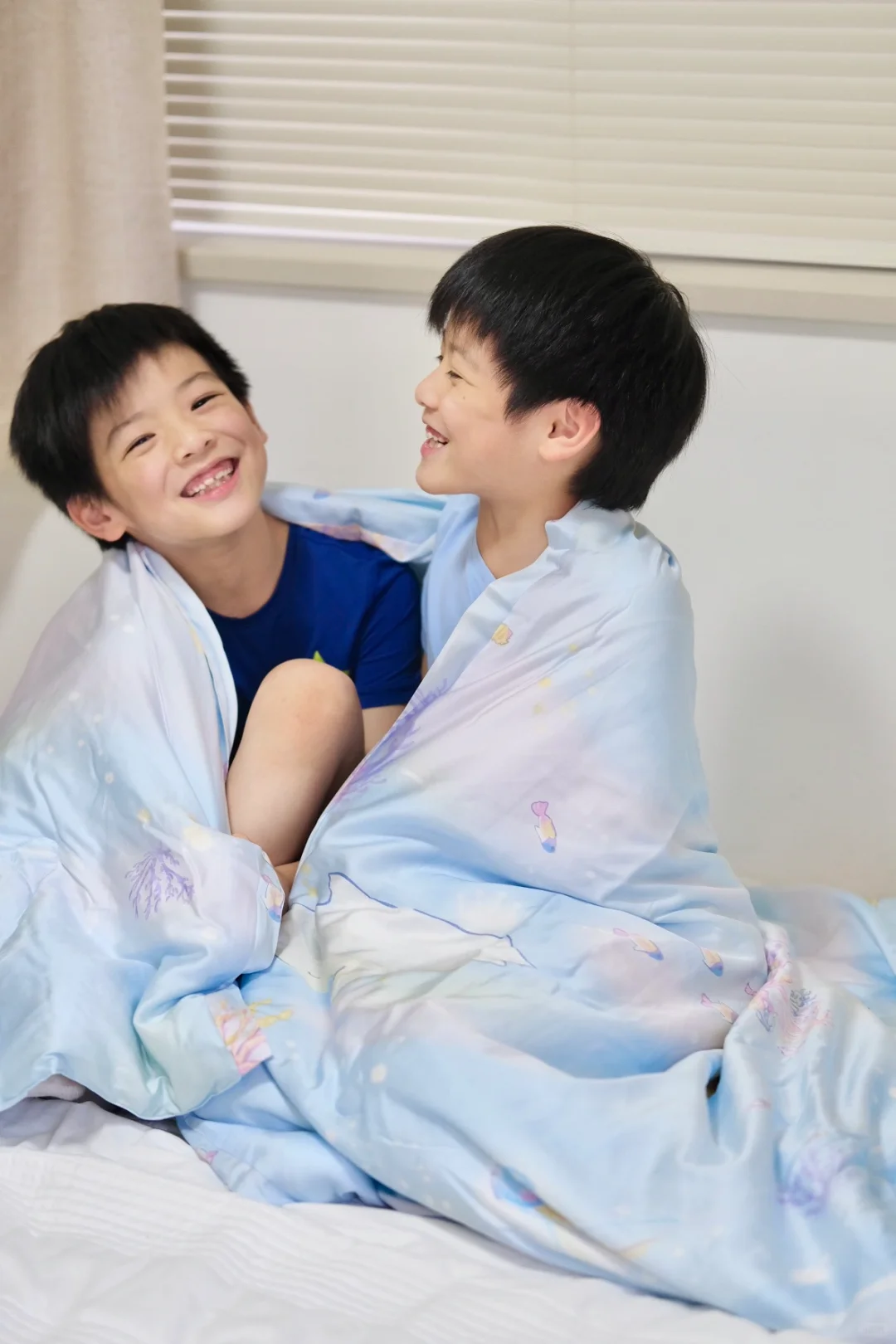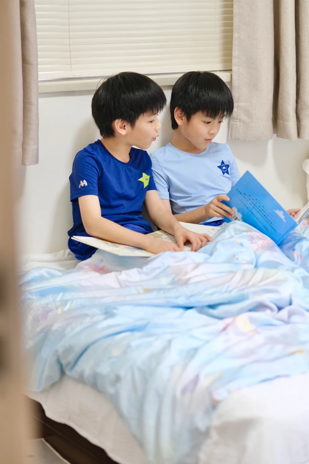 哥哥说:我跟弟弟都好喜欢这个被子,而且它滑滑的还冰冰凉凉的,感觉睡觉都睡得更香啦[喝奶茶R]!