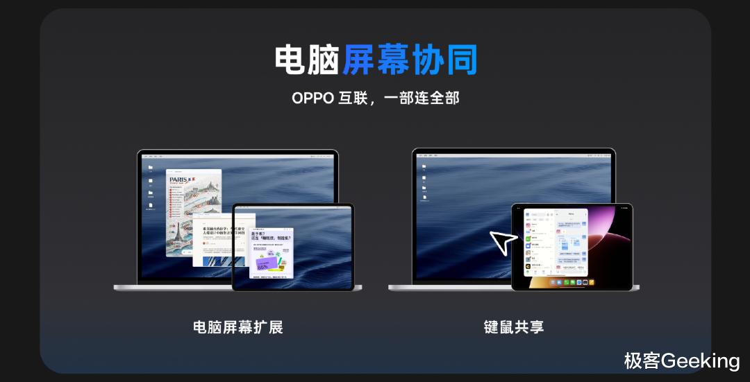 同时优化了平板电脑和 PC 电脑的跨平台互联,屏幕协同支持电脑屏幕扩展和键鼠共享。
