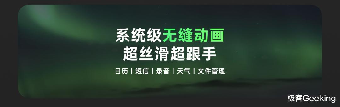 同时在多项系统 App 应用包括日历、短信、录音和天气等带来系统级无缝动画,丝滑又跟手。