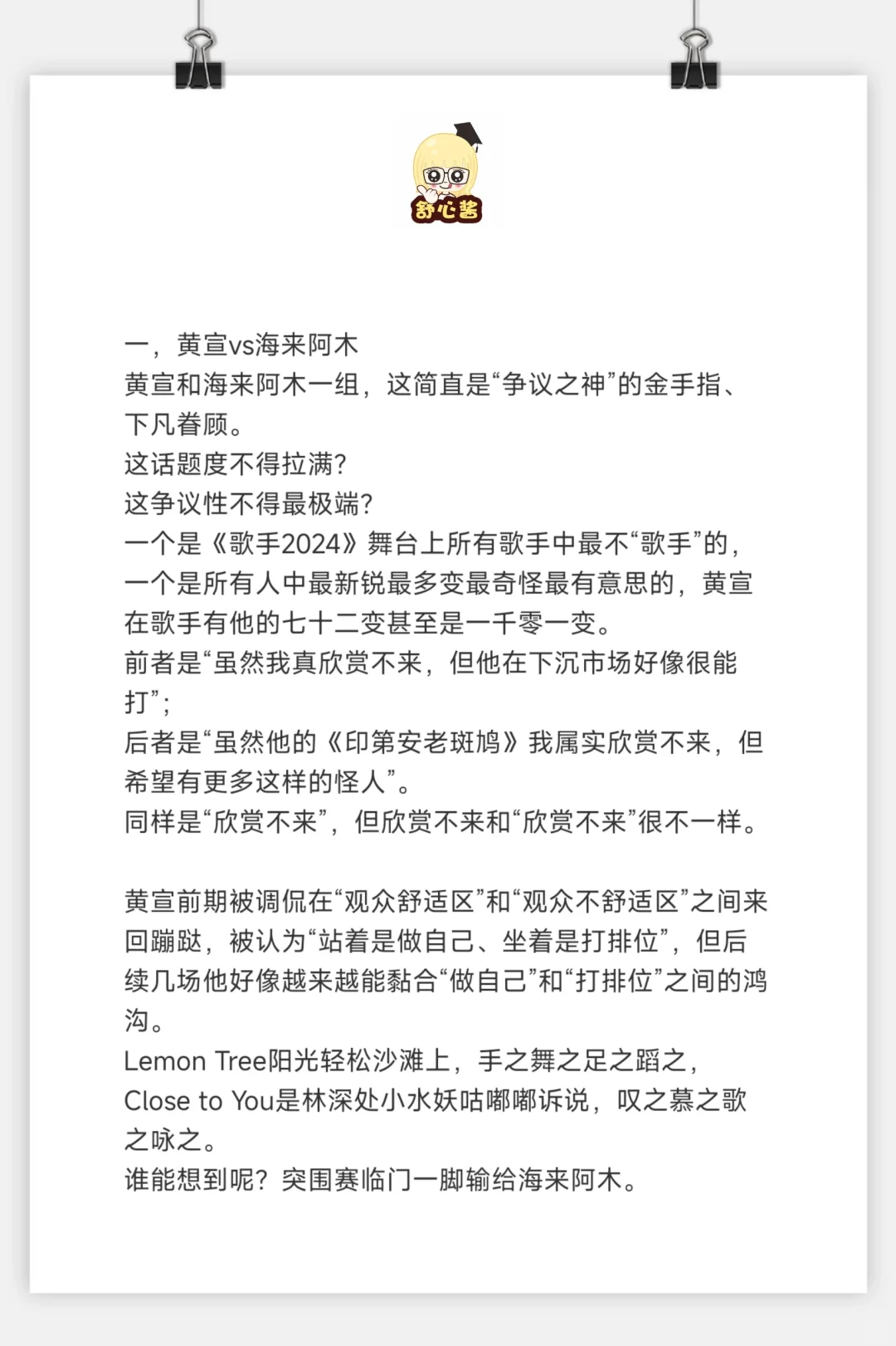 聊聊歌手2024 这场突围赛。