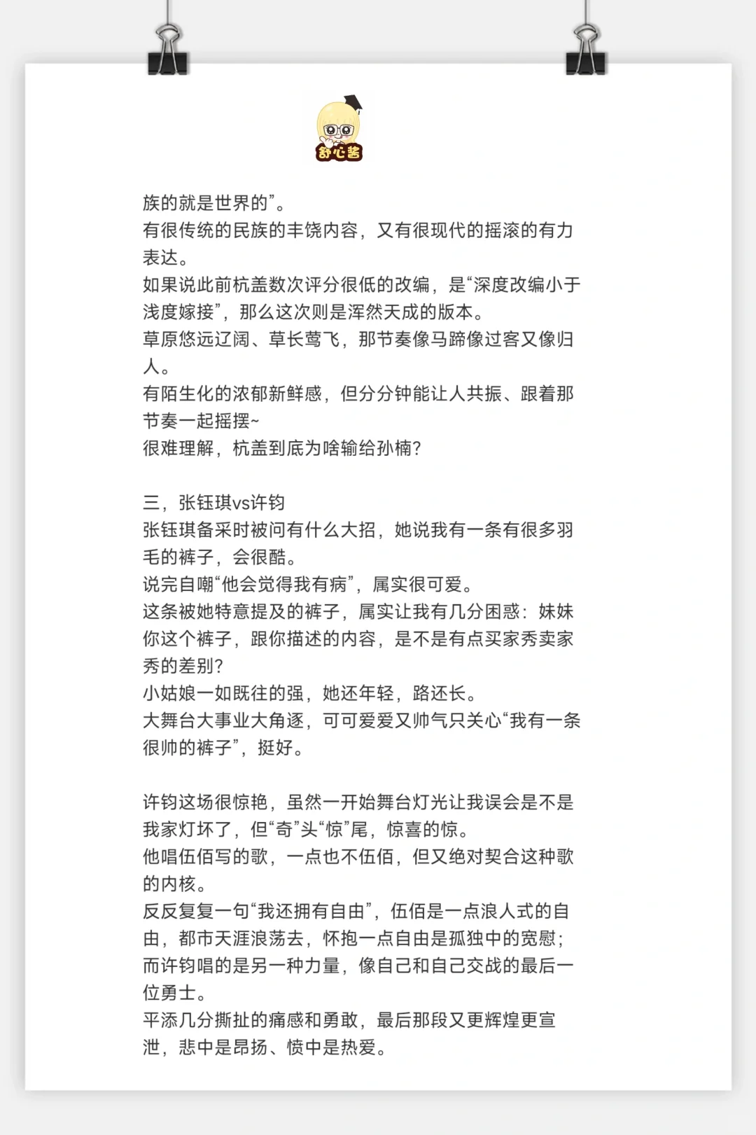 谭维维和袁娅维唱成这样却非得“死”一个,赛制和分组(抽绳子也算广义上的抽签)属实很难评。