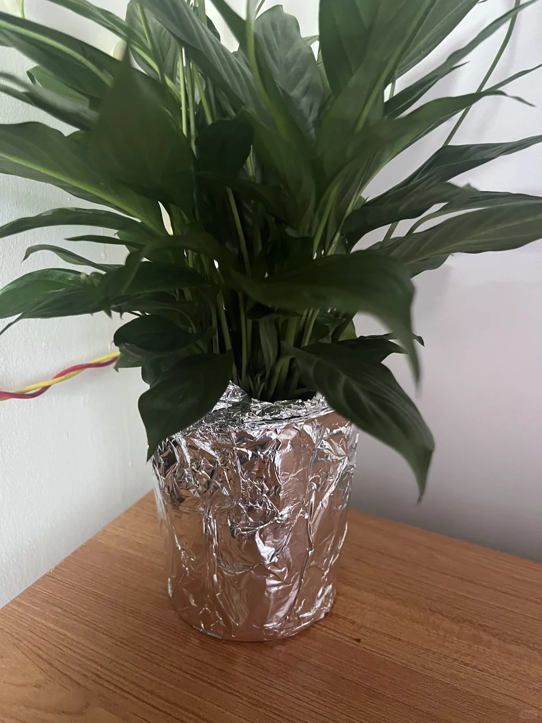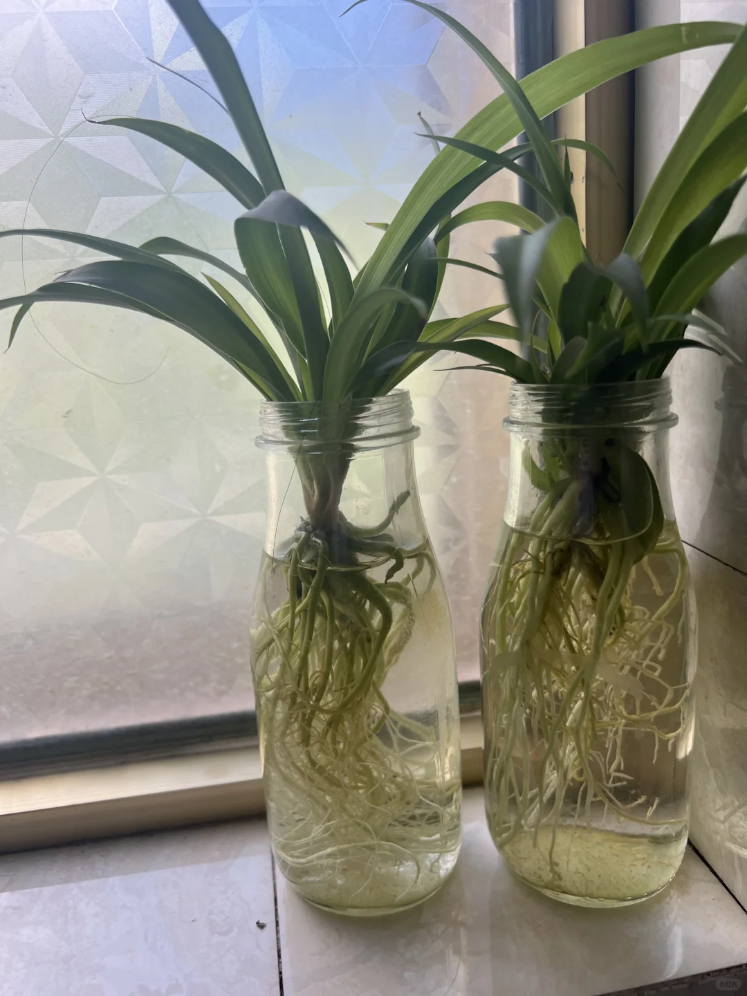 图二吊兰从队里大吊兰上摘的,瓶子饮料瓶。图三花盆不好看,像图二乱糟糟,用厨房锡纸包上了好多了,图二瓶小,包上容易看不见忘添水。