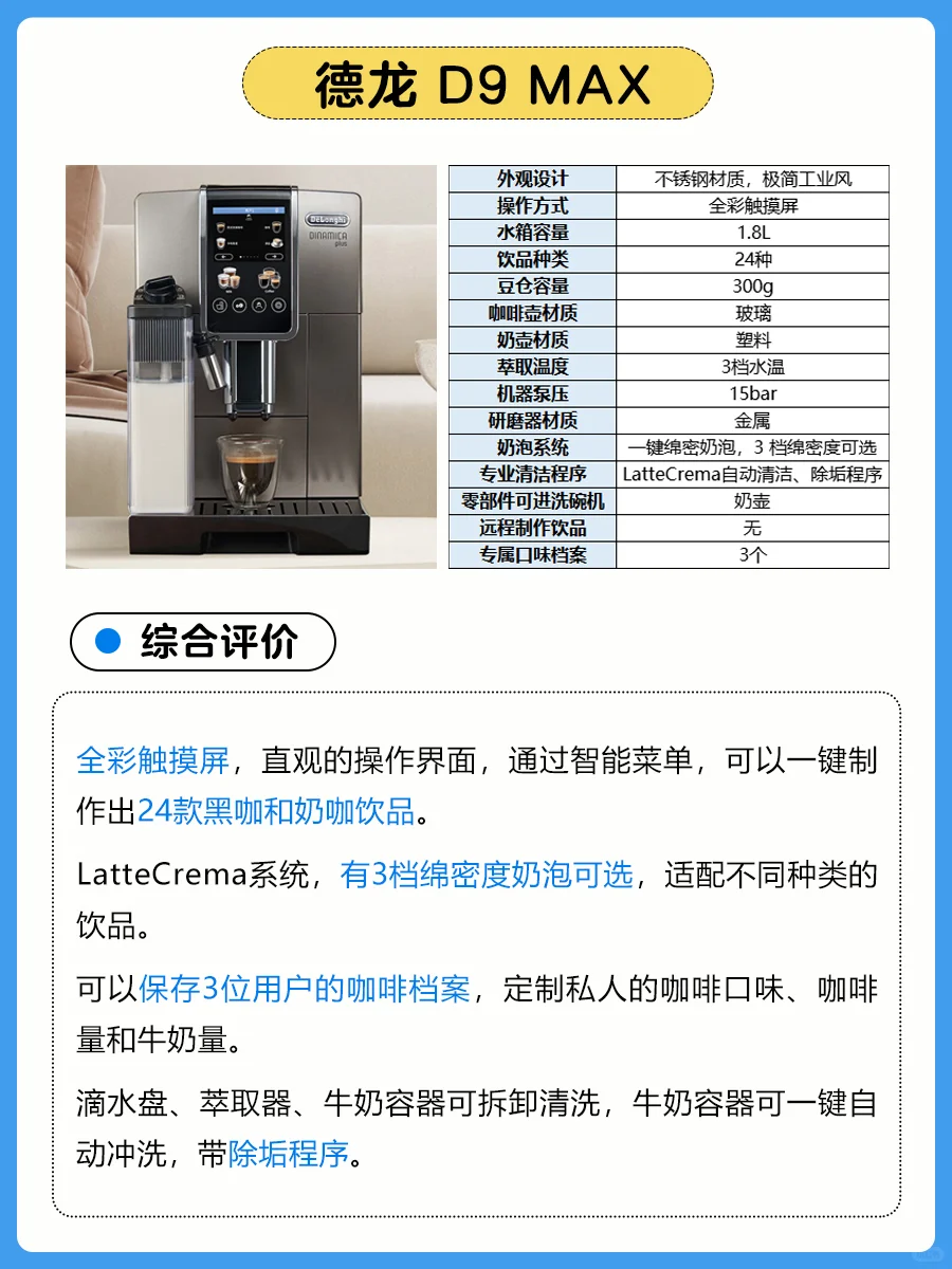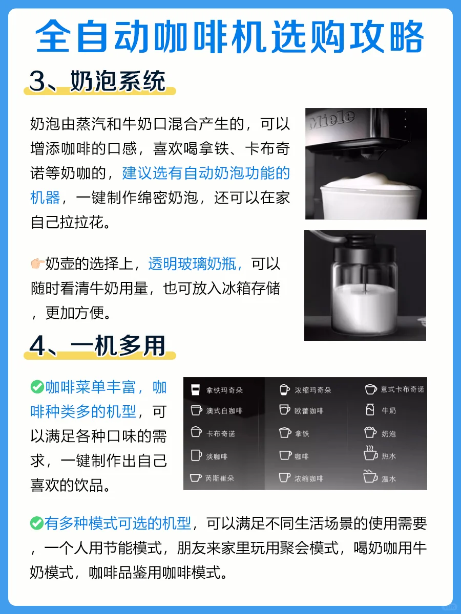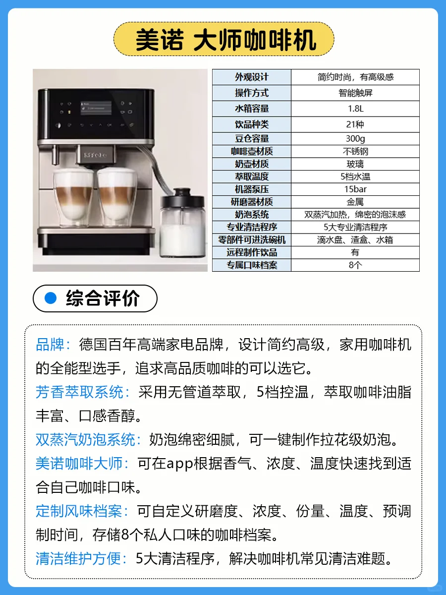 喜欢喝拿铁、卡布奇诺等奶咖的,建议选有自动奶泡功能的机器,一键制作绵密奶泡,还可以在家自己拉拉花。