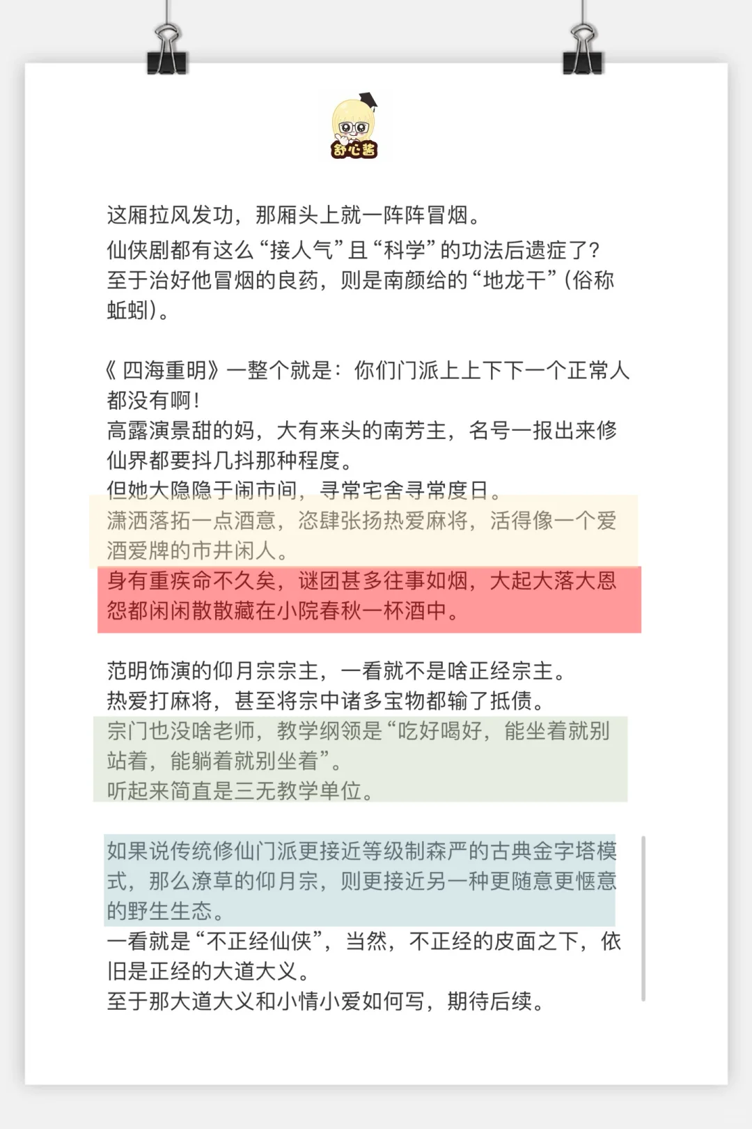 大部分仙侠故事,都不食人间烟火吧?修仙要辟谷吧?但《四海重明》不是