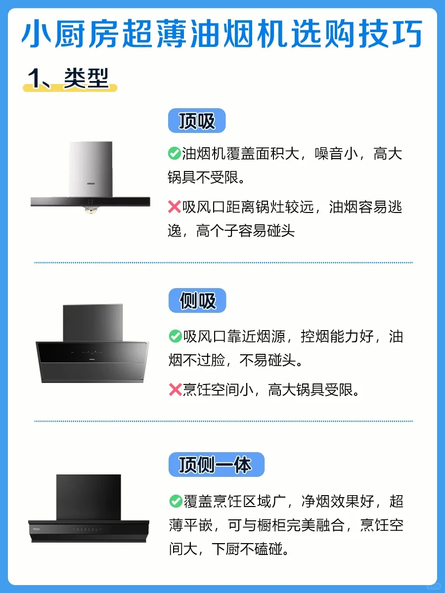 1️⃣类型分为顶吸、侧吸、顶侧一体