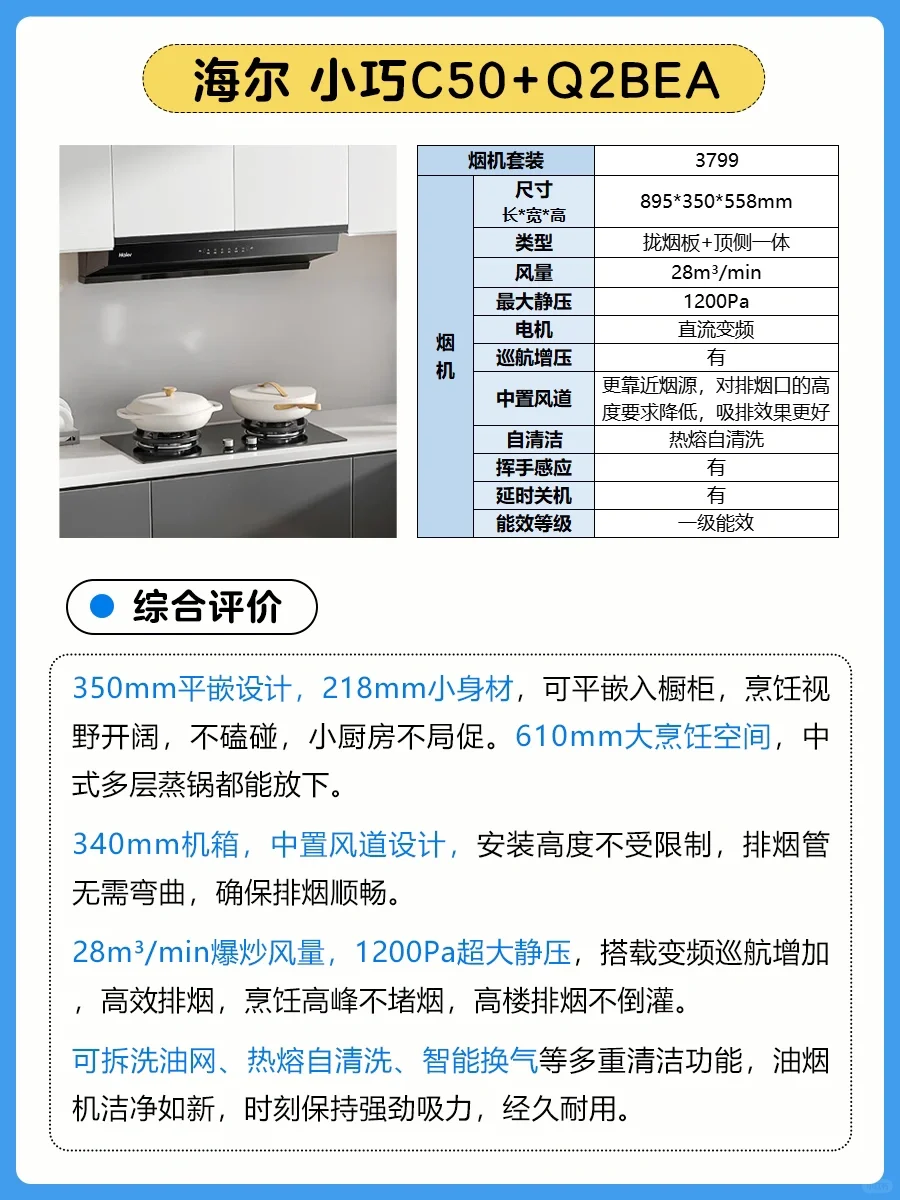 ✅选带有智能换气功能的,给烹饪后的小厨房换换气,重获清新空气。