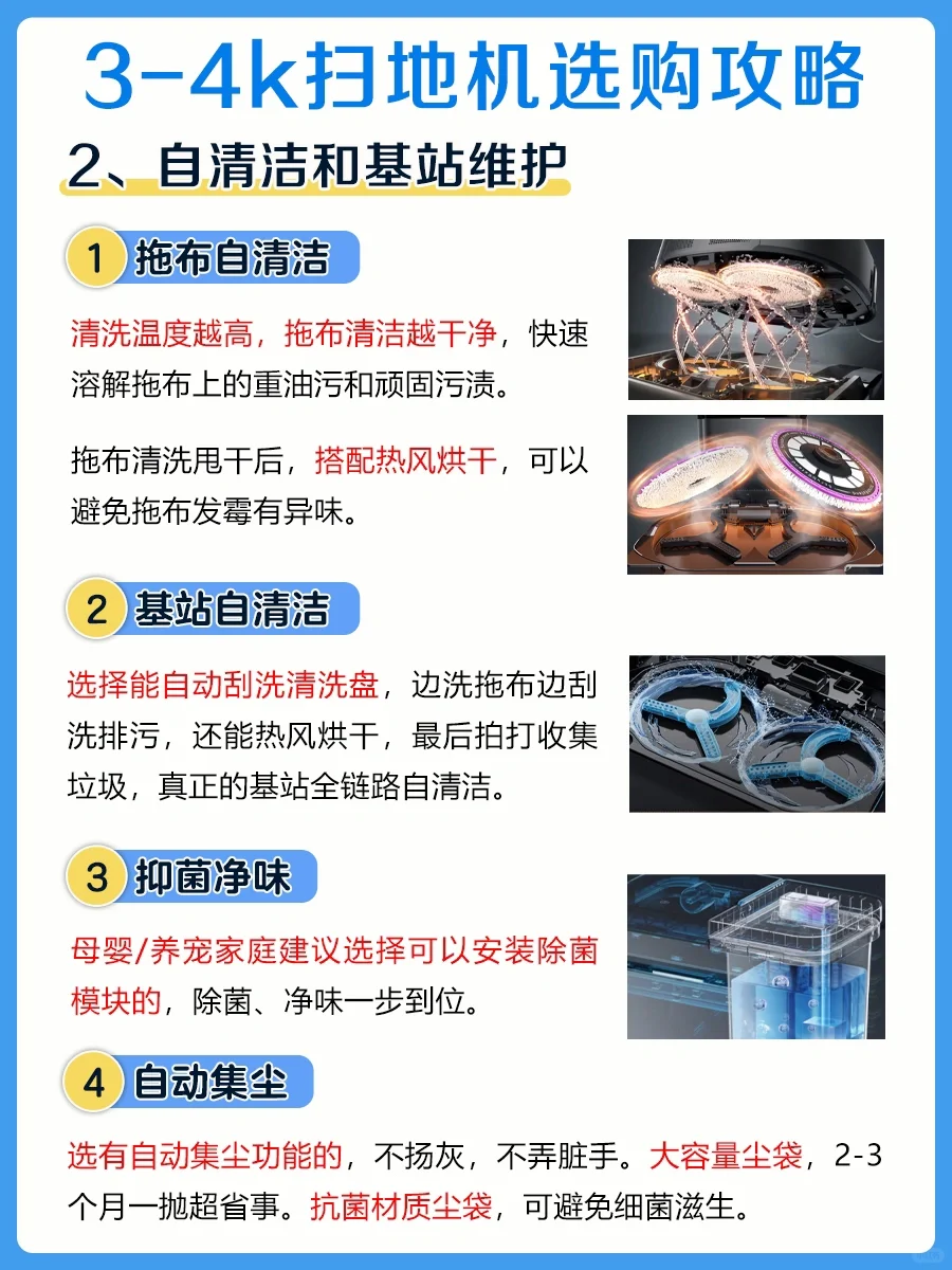 ✅选有自动集尘功能的,不扬灰,不弄脏手。大容量尘袋,2-3个月一抛超省事。抗菌材质尘袋,可避免细菌滋生