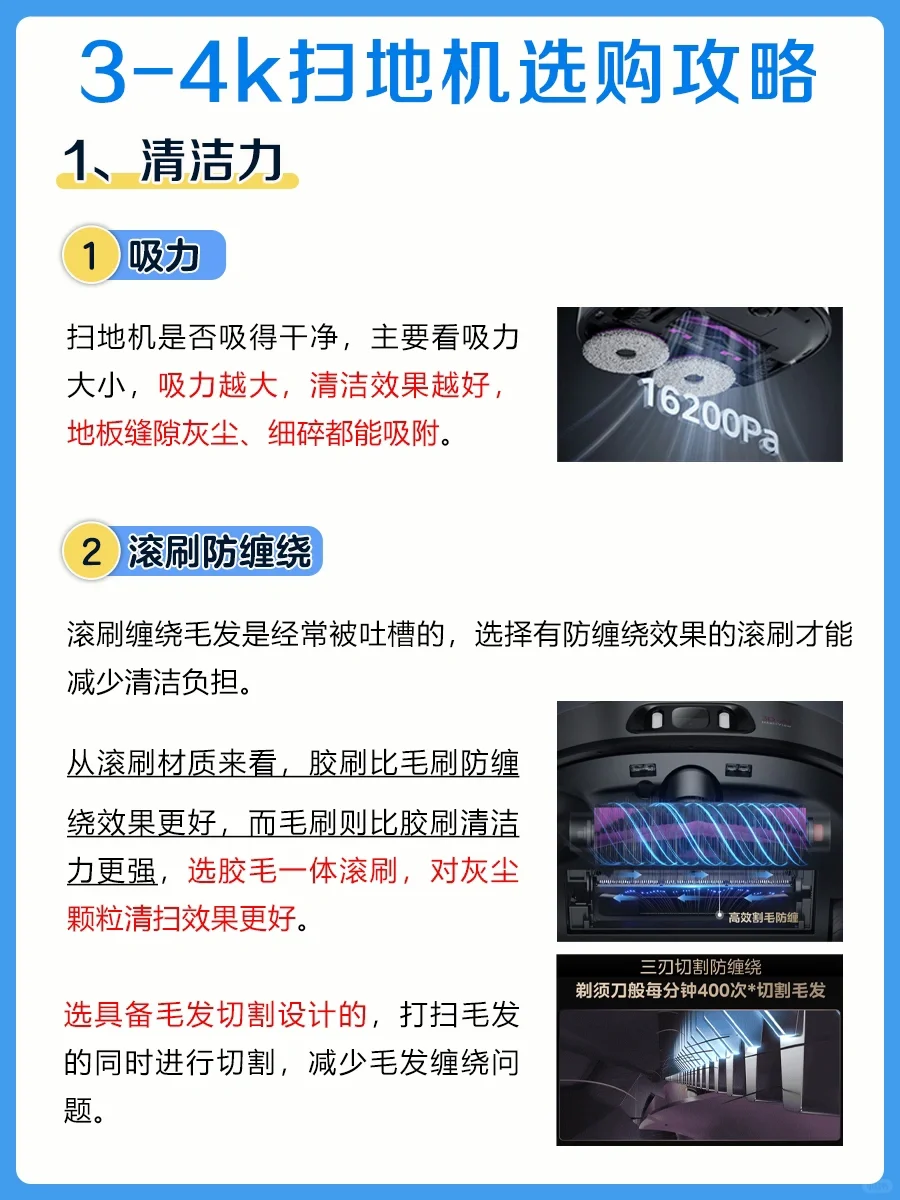 ✅选大吸力,吸力越大清洁效果越好,地板缝隙灰尘、细碎都能吸附