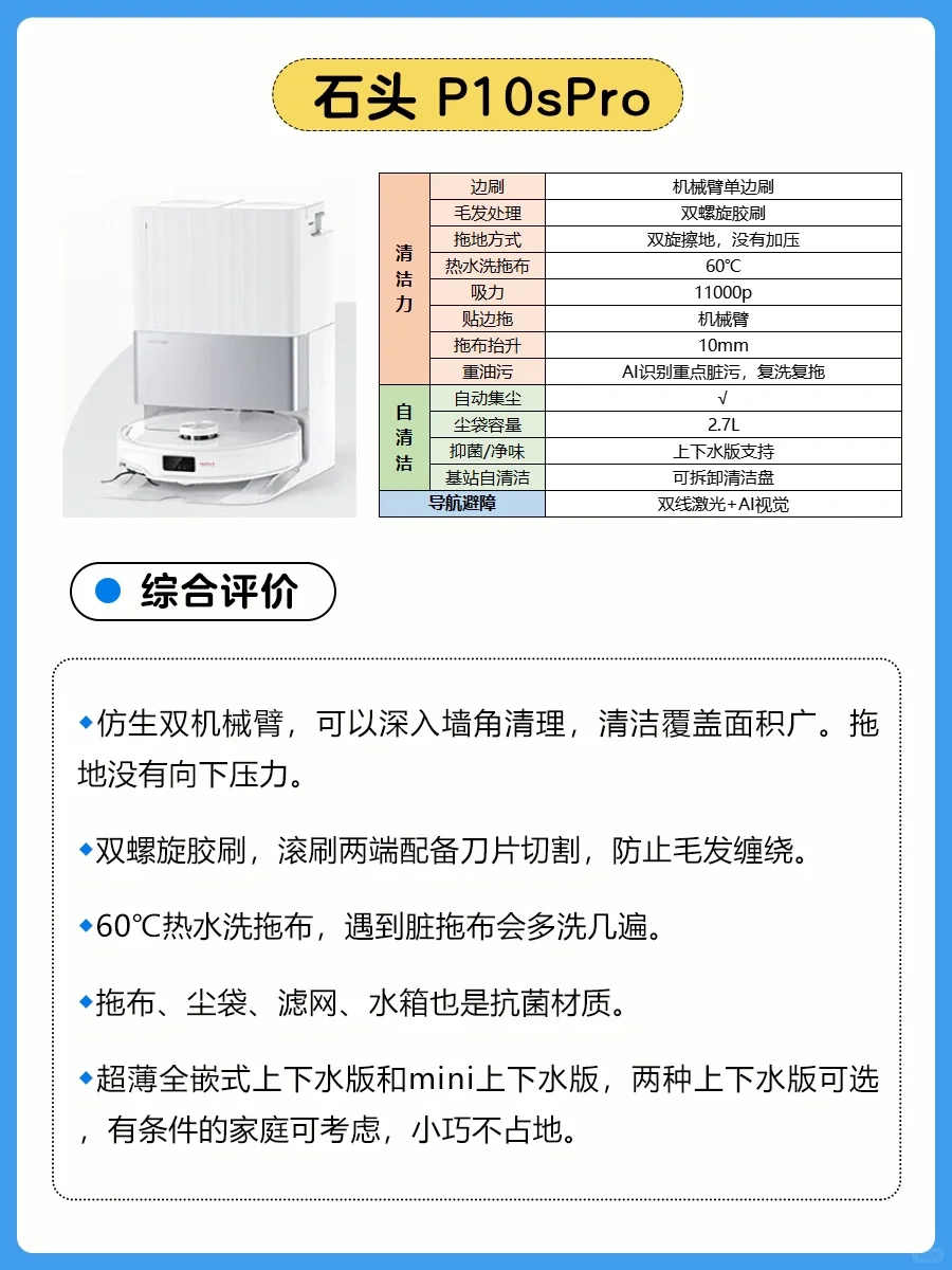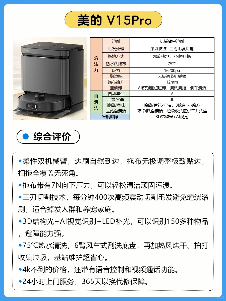 ✅选能自动刮洗清洗盘,边洗拖布边刮洗排污,还能热风烘干,最后拍打收集垃圾,真正的基站全链路自清洁