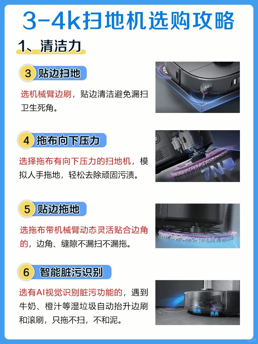 ✅选拖布有向下压力的扫地机,模拟人手拖地,轻松去除顽固污渍