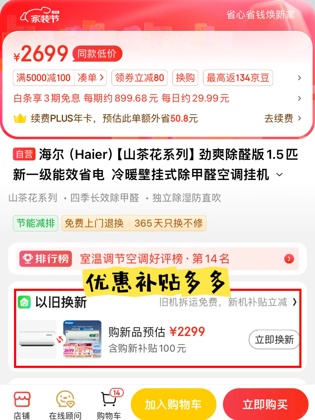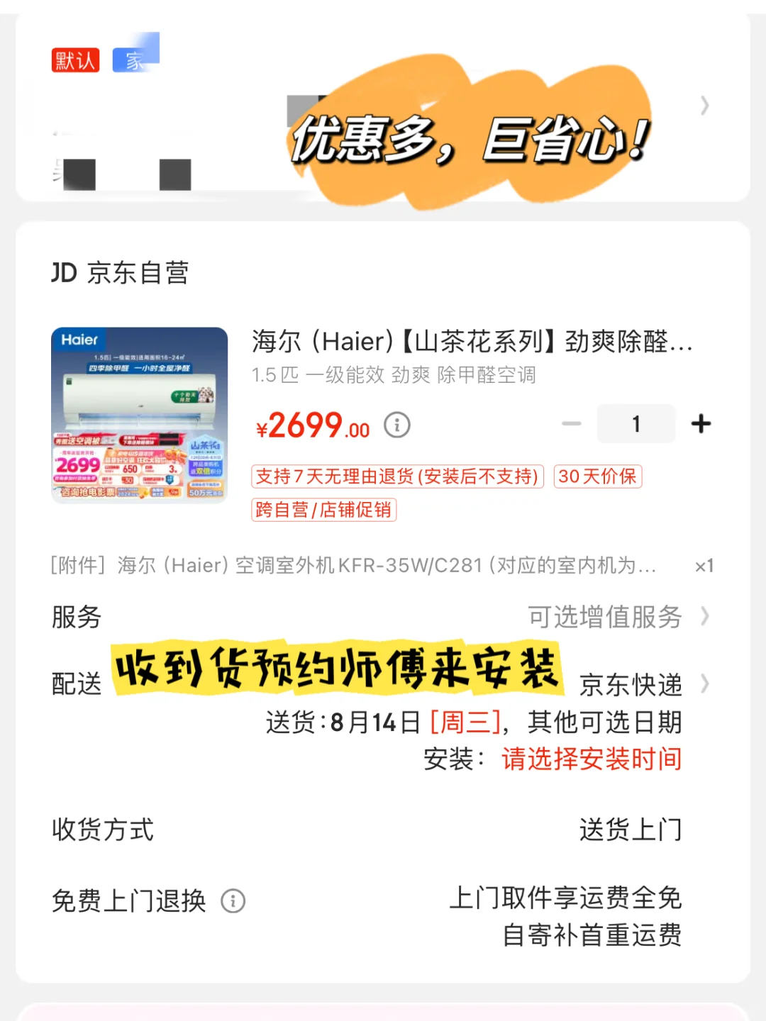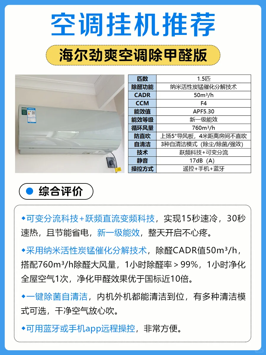 PS:海尔劲爽空调除甲醛版,1.5匹赛过2匹