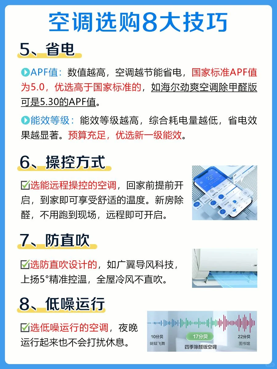 🔸APF值:国家标准APF值为5.0,优选高于国家标准的,如海尔劲爽空调除甲醛版可是5.30的APF