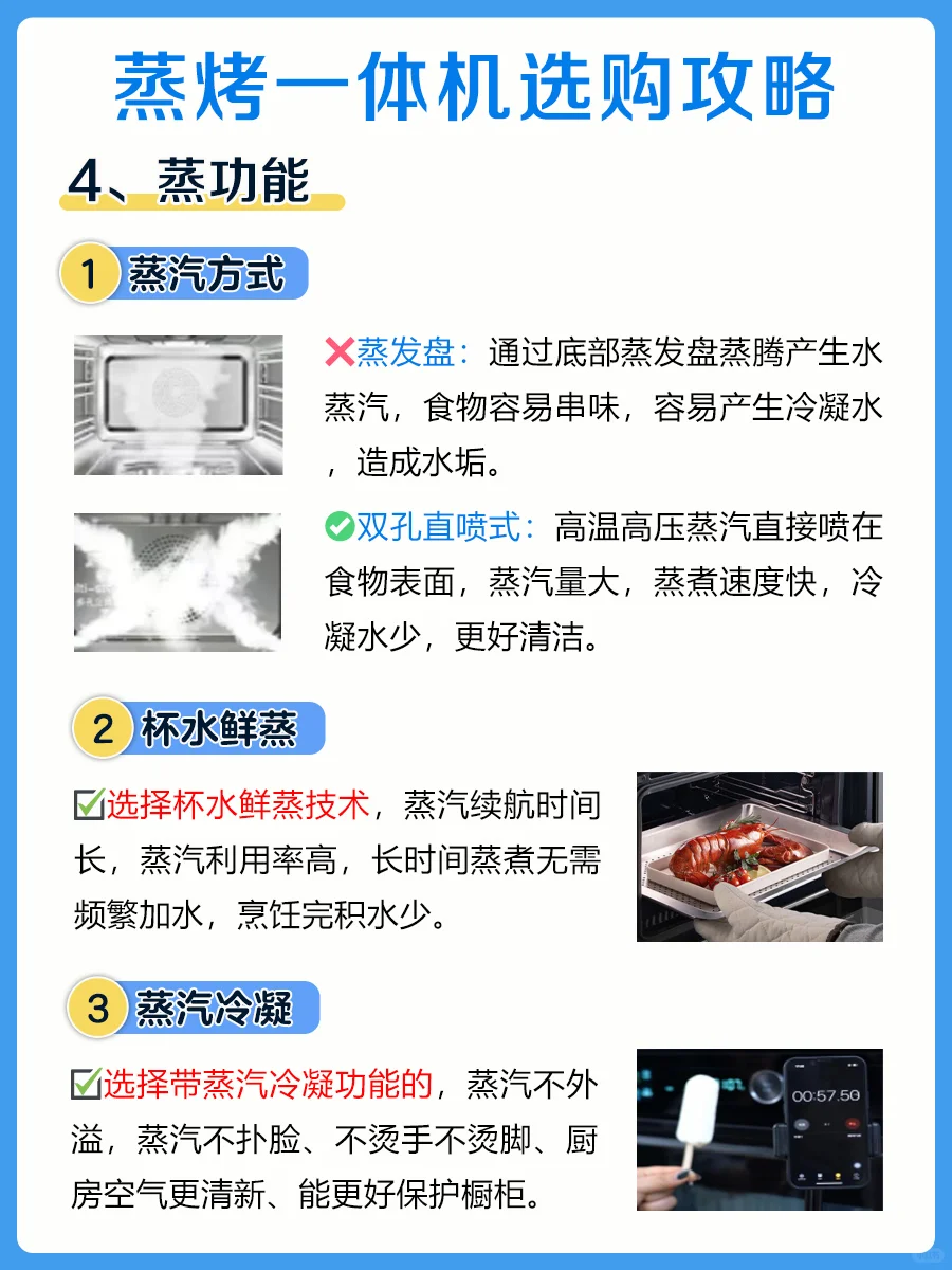 ✅选带蒸汽冷凝功能的,蒸汽不外溢,蒸汽不扑脸、不烫手不烫脚、厨房空气更清新、能更好保护橱柜。