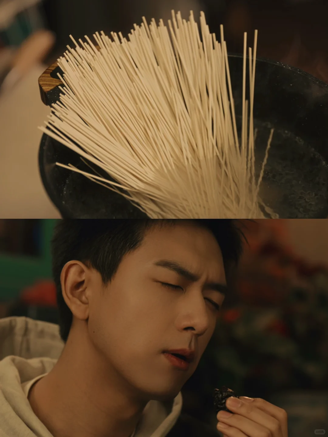 寡淡一锅清水煮面,对比隔壁女主一家热热闹闹的大菜,略有几分寂寥,但也只是淡淡一点~