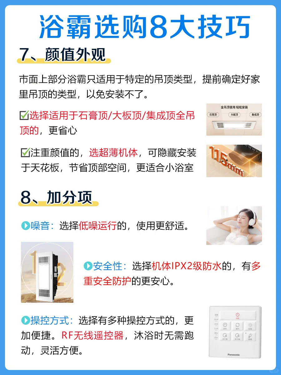 ✅注重颜值,选超薄机体,可隐藏安装于天花板,节省顶部空间,适合小浴室
