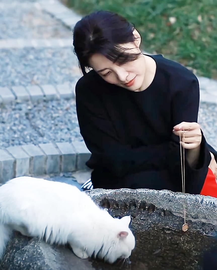 周涛穿着浅色休闲服,笑容甜美,身上的少女感十足。