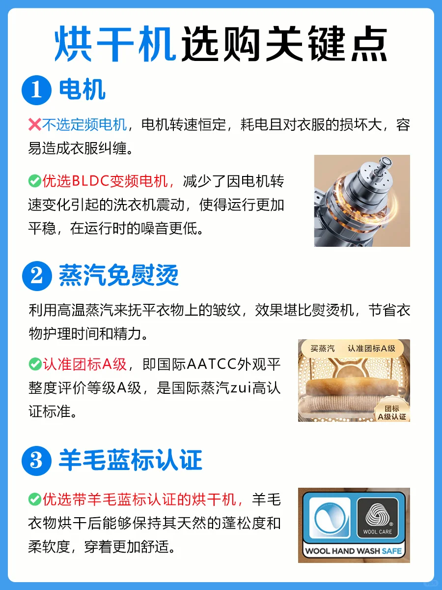 优选带正反转烘干技术的,减少衣物缠绕和打结,烘干大件或多件衣物时更高效。