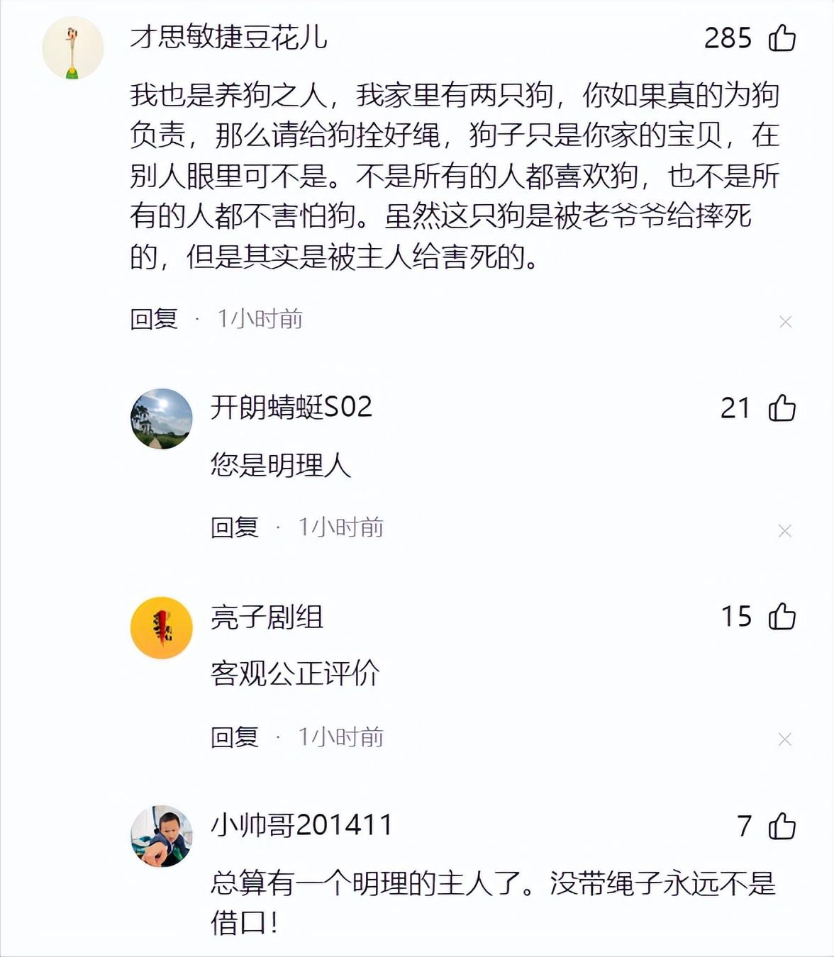 你们看,这些评论都是在为做好事的爷爷挑毛病,同时又在为那位没拴狗绳的女士找理由,好像想说明双方都有责任,来平息事态。