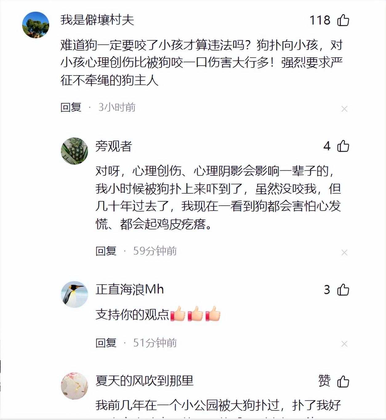 还有人觉得爷爷反应过激,只是把小女孩吓了一下而已,并没有真正伤害到她,至于要摔死别人的狗吗?