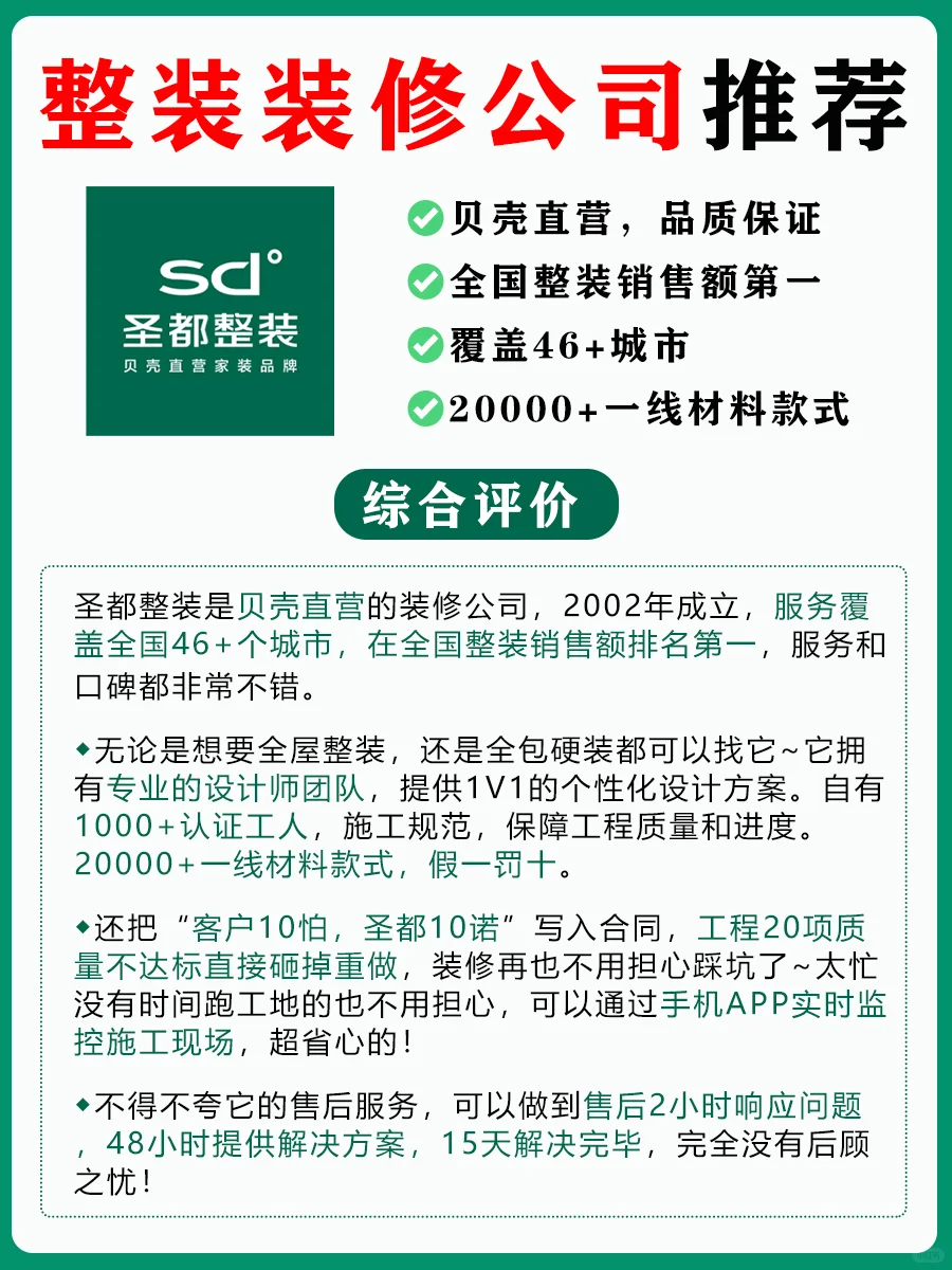 👉🏻无论是想要全屋整装,还是全包硬装都可以找圣都整装~✅它拥有专业的设计师团队,提供1V1的个性化设计方案。✅上万名认证工人,施工规范,保障工程质量和进度。✅20000+一线材料款式,假一罚十。