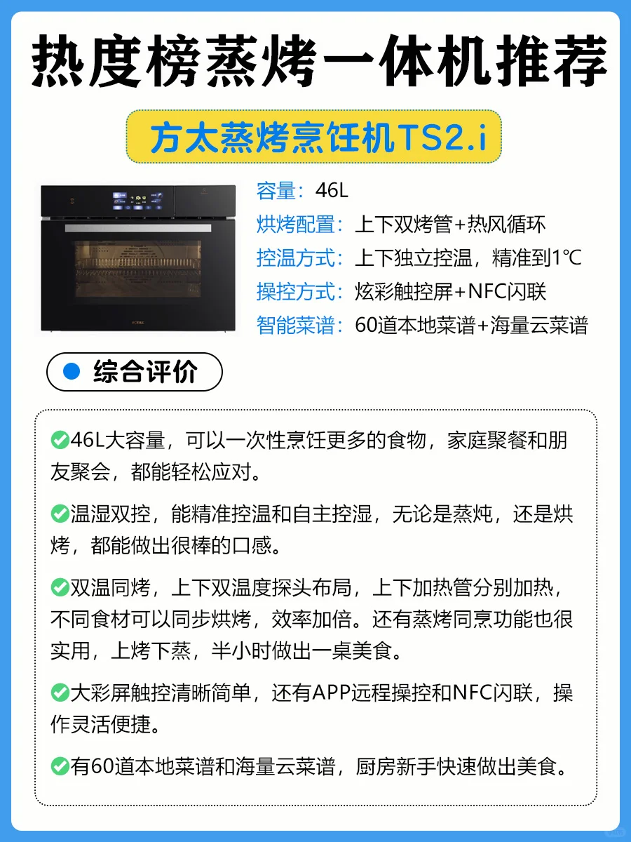 ✨看完选购技巧还不知道怎么选的姐妹们,我给大家推荐方太蒸烤烹饪机TS2.i,使用体验确实很不错~