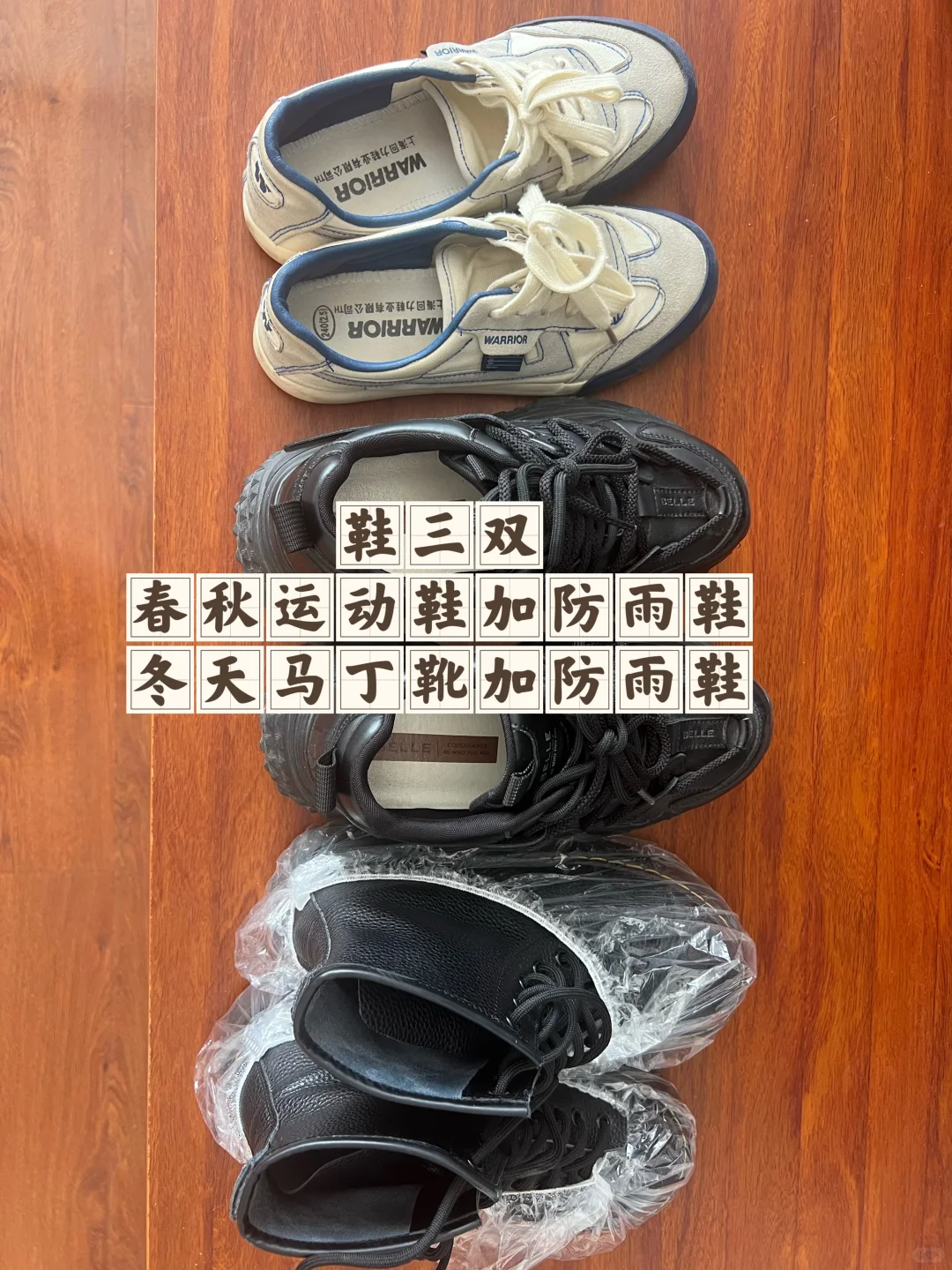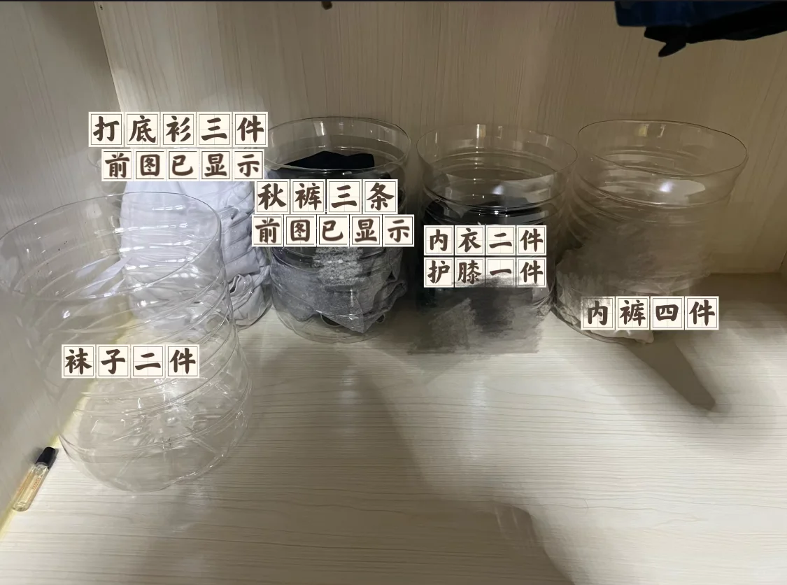 而且我每天里外都换新的(除了二件羽绒服和一件马甲),竟然还觉得衣服多到爆:有两件上衣两件下裤是因为停水不够洗才保留;内裤四条变两条足够;有些外衣一遮看不出没穿内衣可断;护膝可以不算在里面;浅色的三件好久不穿要留到内地穿。