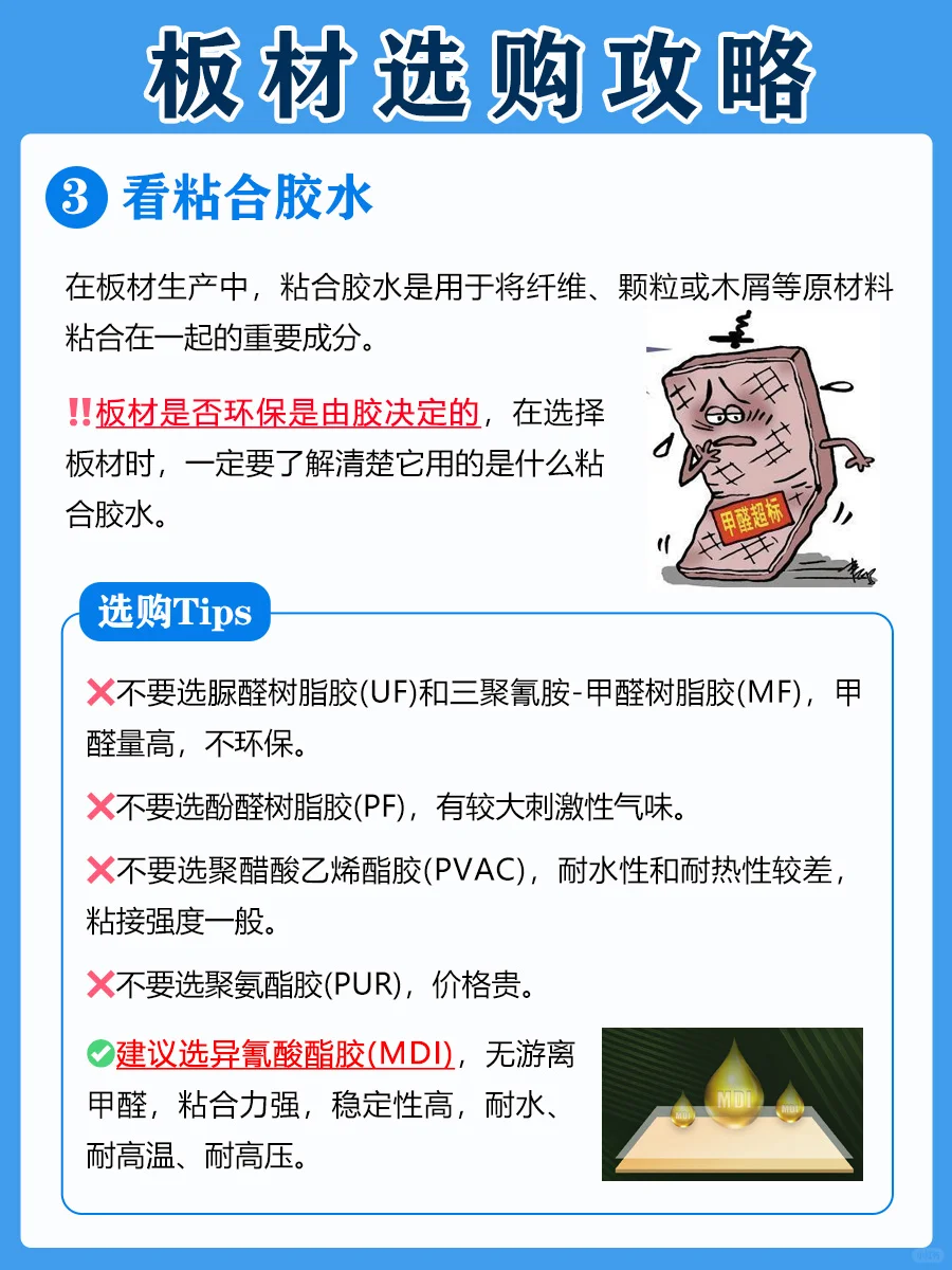 板材是否环保是由胶决定的,建议选异氰酸酯胶(MDI),无游离甲醛,粘合力强,稳定性高,耐水、耐高温、耐高压。(见图4)