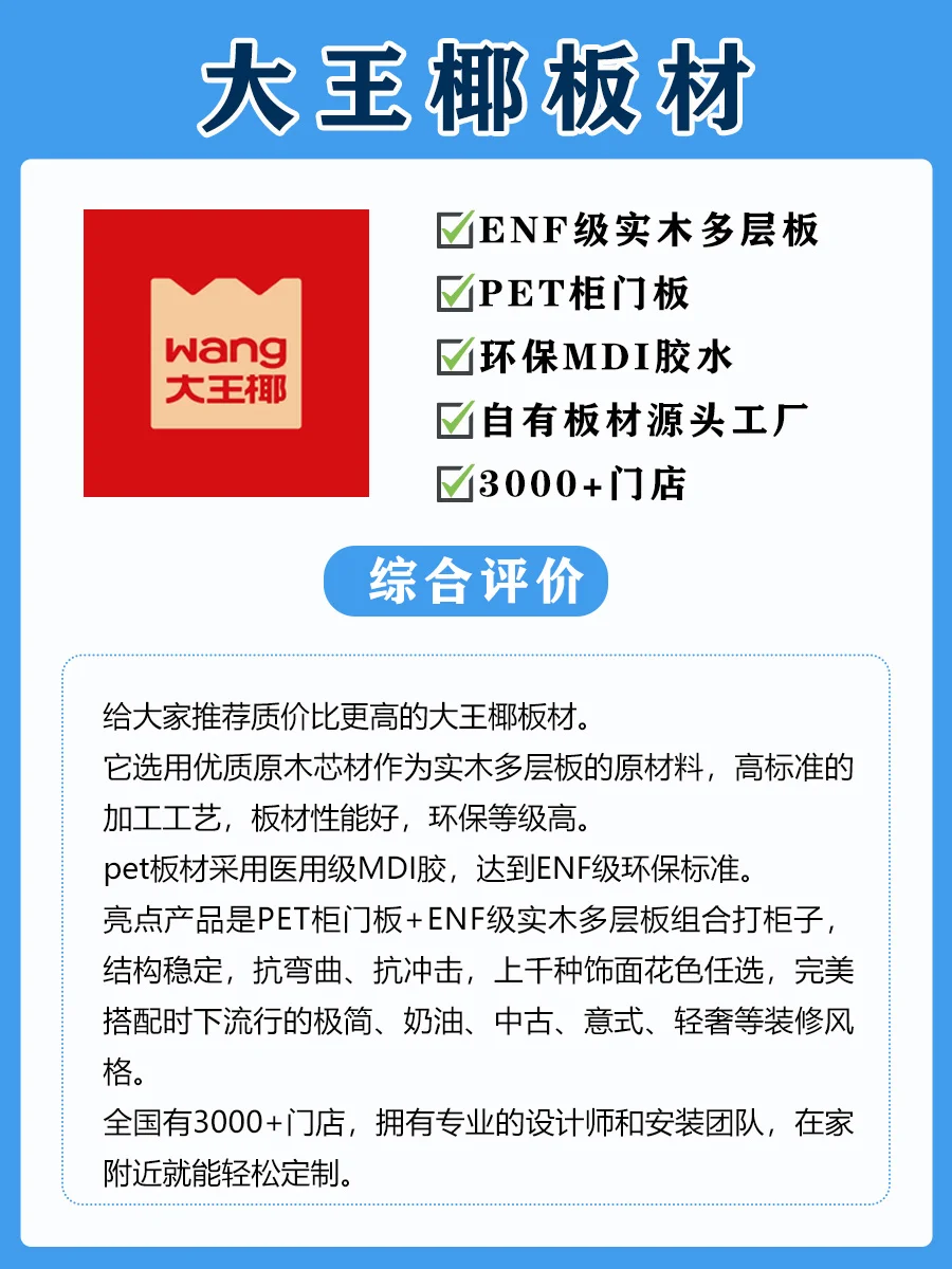 知名板材品牌有:大王椰、兔宝宝、千年舟、莫干山板材、水性科天等。各有优缺点,可以根据需要选择。(见图1)