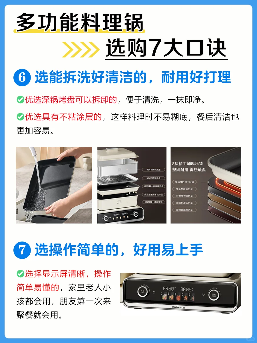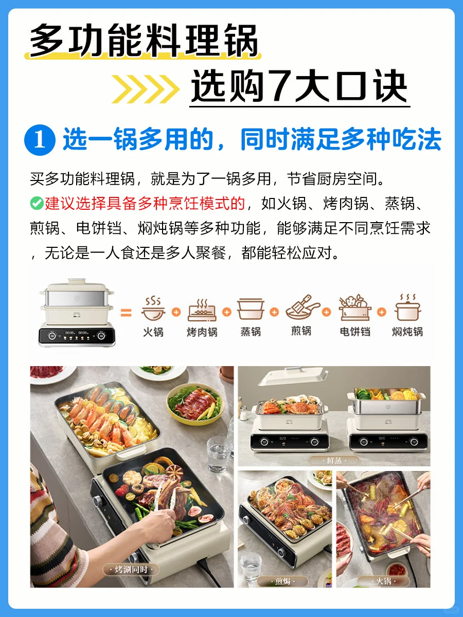 📝那么怎么选一款适合自己的料理锅呢?我们来看看这几点: