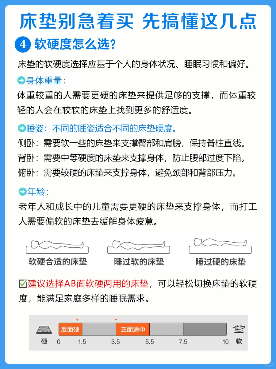 ✅建议选择AB面软硬两用的床垫,可以轻松切换床垫的软硬度。