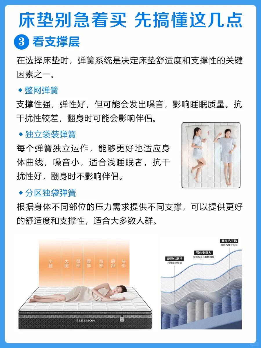 ✅优选分区独袋弹簧,根据身体不同部位的压力需求提供不同支撑,可以提供更好的舒适度和支撑性,适合不同睡姿的人群。