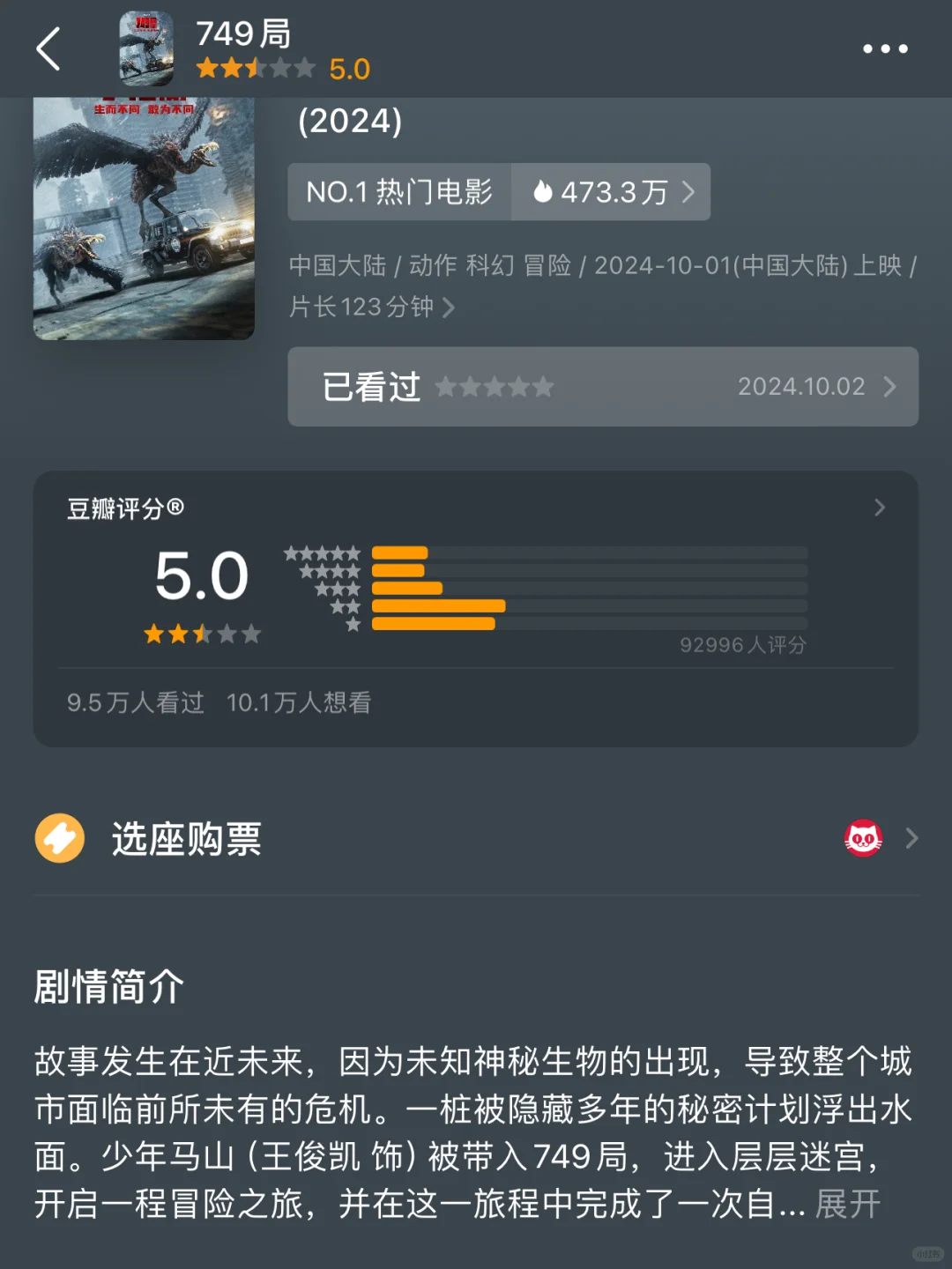 电影 749局 有翼族、有外星人,有克苏鲁式怪物,说它是广义上的科幻冒险、末日灾难、超级英雄片,大概也都可以