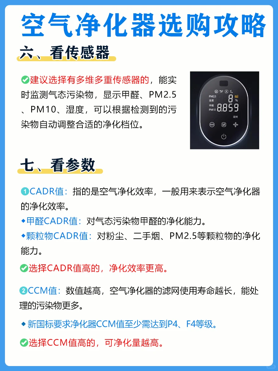 ✅建议选择有多维多重传感器的,可以根据检测到的污染物,自动调整合适的净化档位。