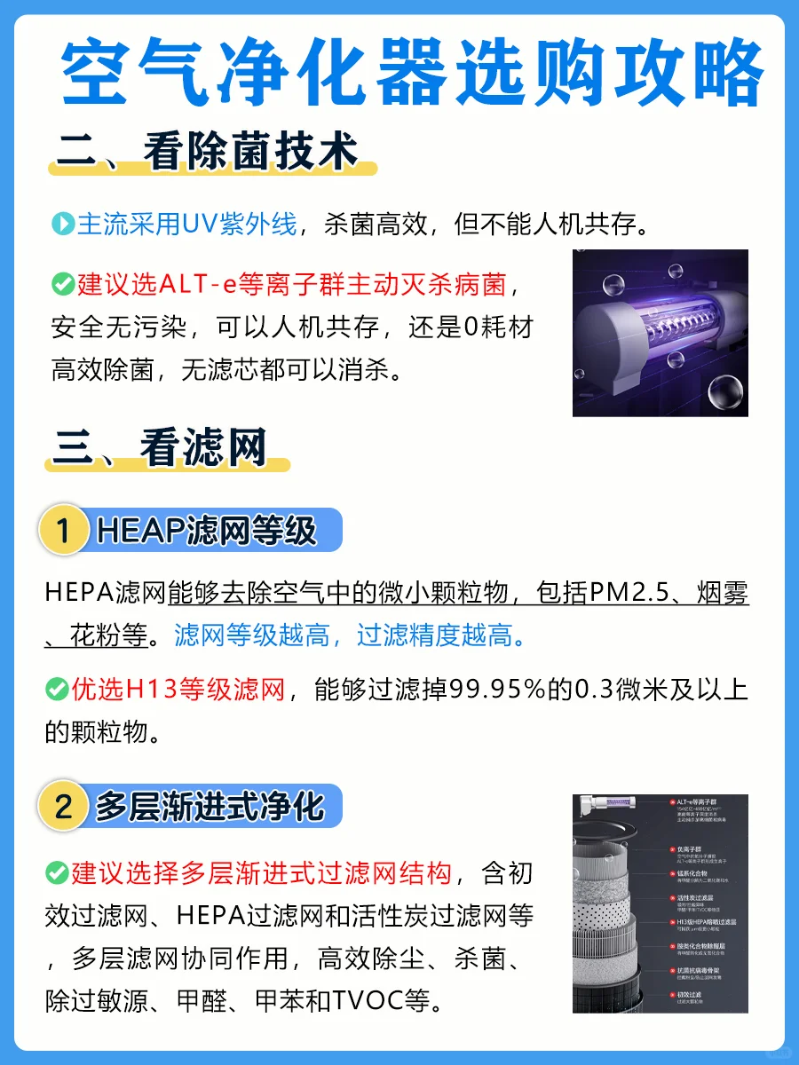 ✅建议选ALT-e等离子群主动灭杀病菌,安全无污染,可以人机共存,还是0耗材高效除菌,无滤芯都可以消杀。
