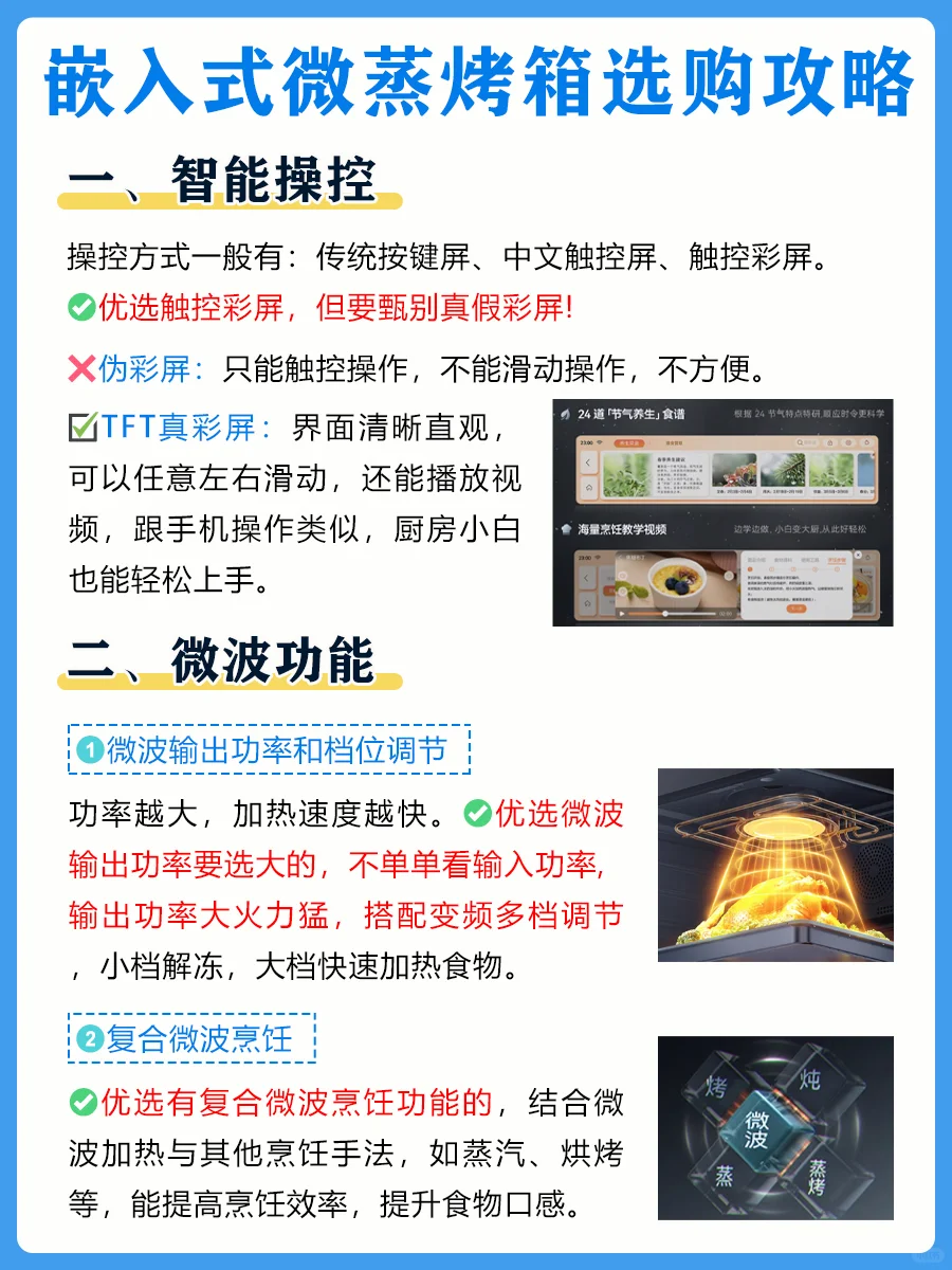 😎说到厨房幸福感家电,不得不提嵌入式微蒸烤箱,微波、蒸、烤、空气炸、养生炖样样精通,不过厨房新手担心不会使用,怎么选到功能强大,操作又便捷的微蒸烤箱?还是先看看选购攻略吧~